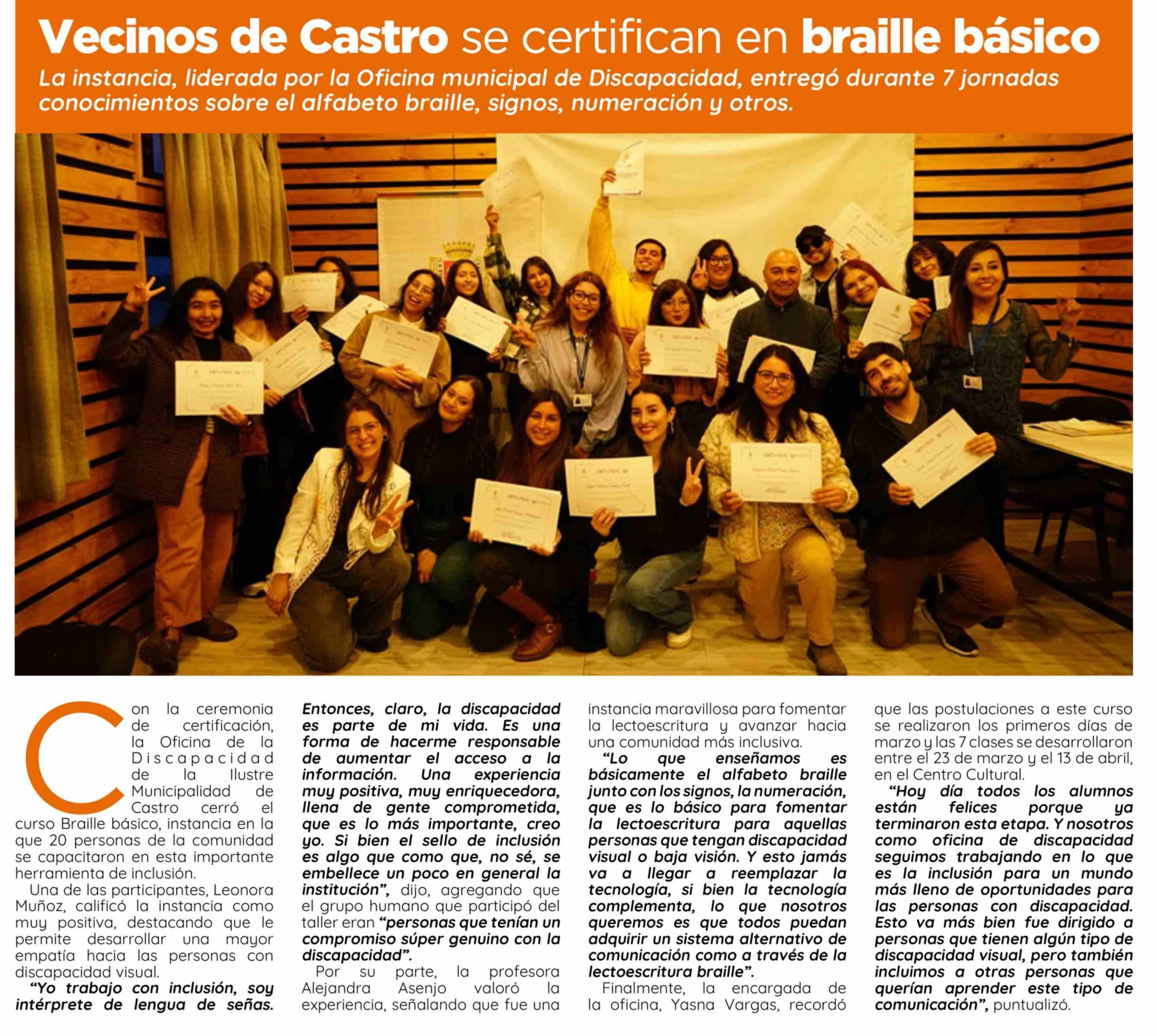Vecinos de Castro se certifican en braille básico