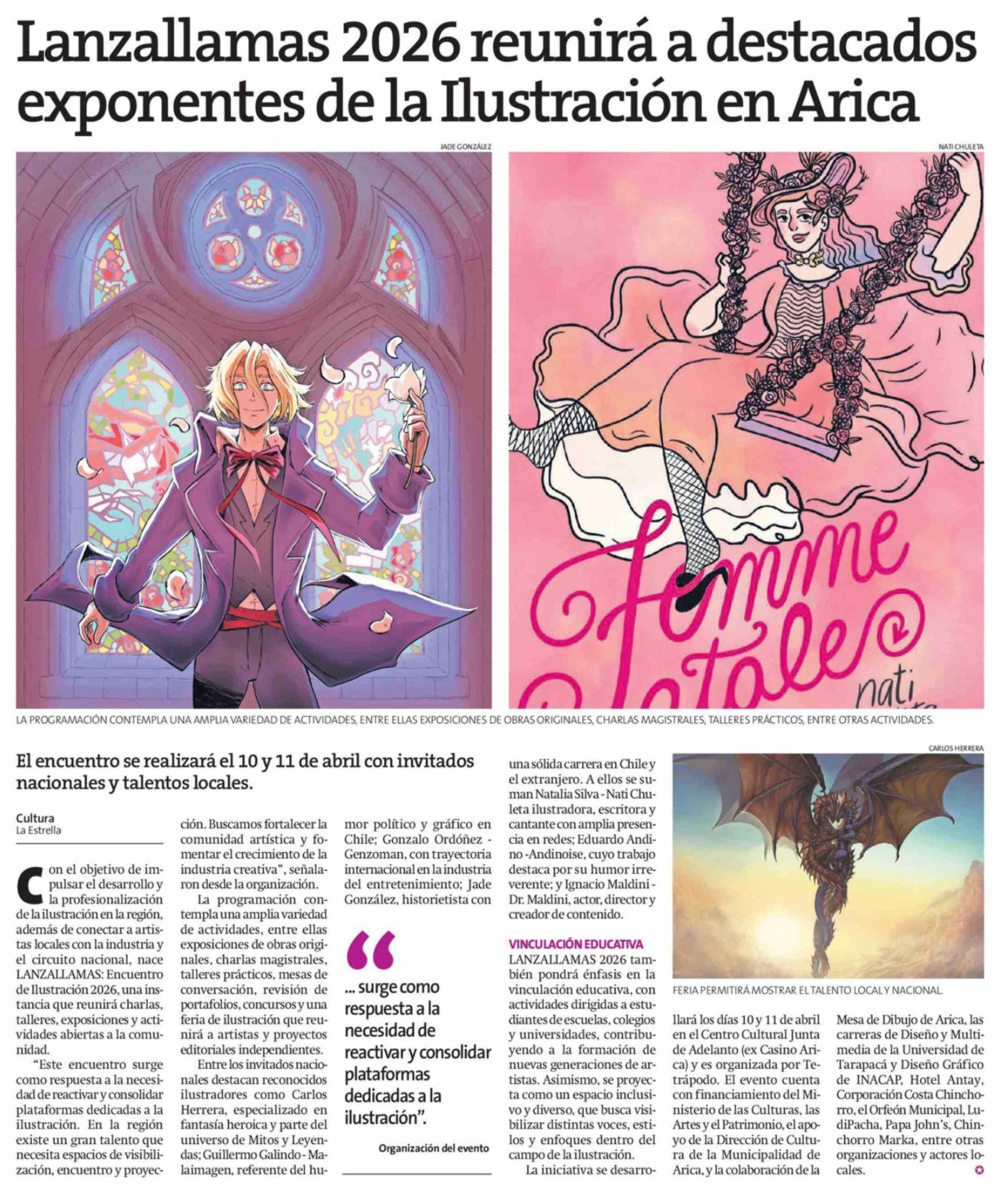 Lanzallamas 2026 reunirá a destacados exponentes de la Ilustración en Arica
