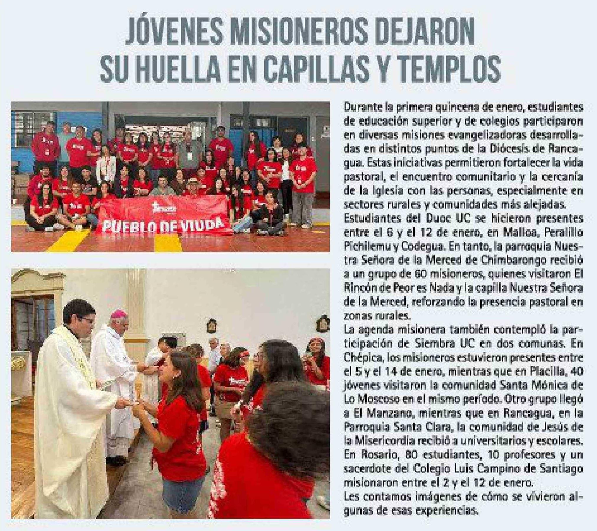 JÓVENES MISIONEROS DEJARON SU HUELLA EN CAPILLAS Y TEMPLOS