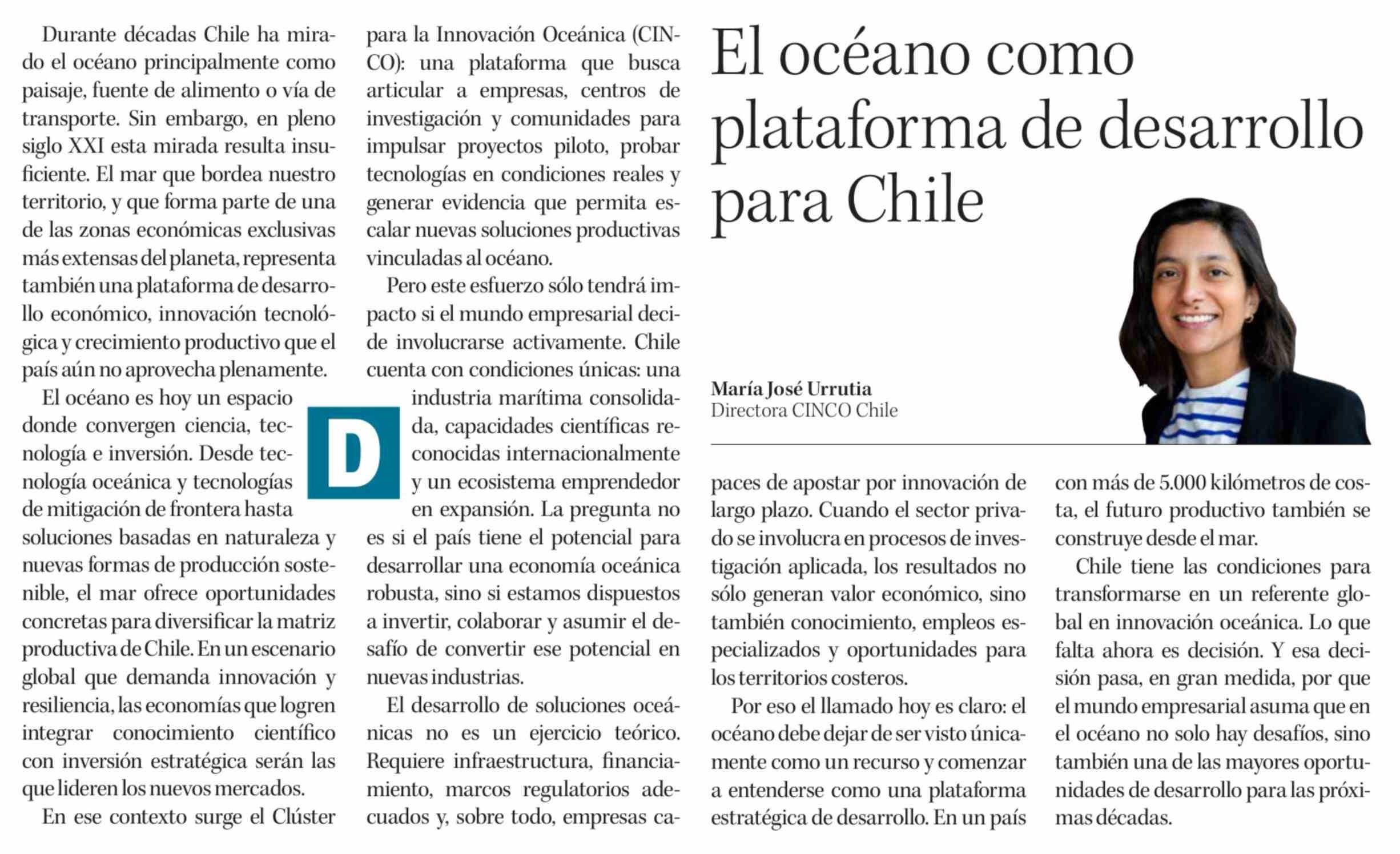 Columnas de Opinión: El océano como plataforma de desarrollo para Chile