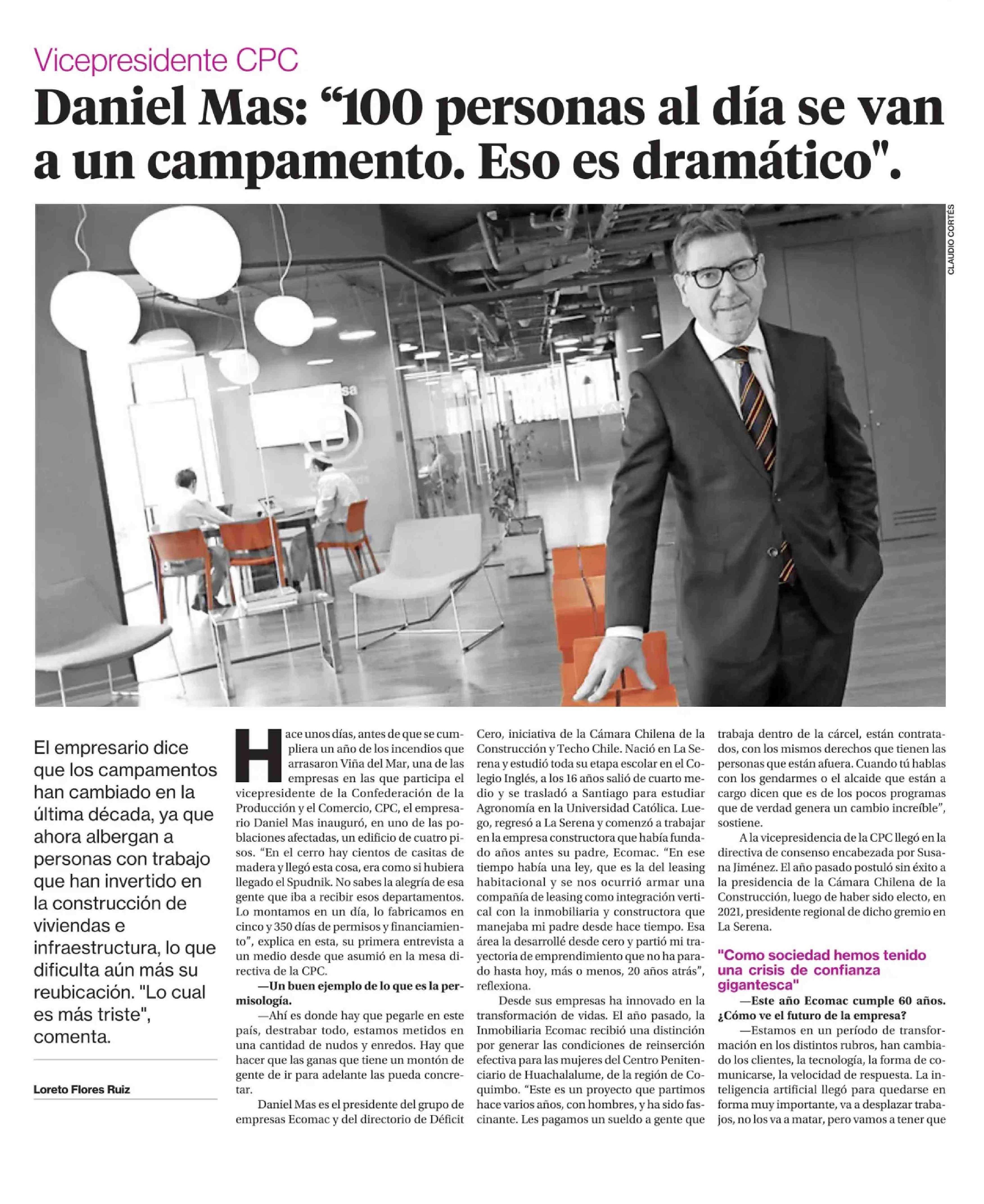 Daniel Mas: “100 personas al día se van a un campamento. Eso es dramático".