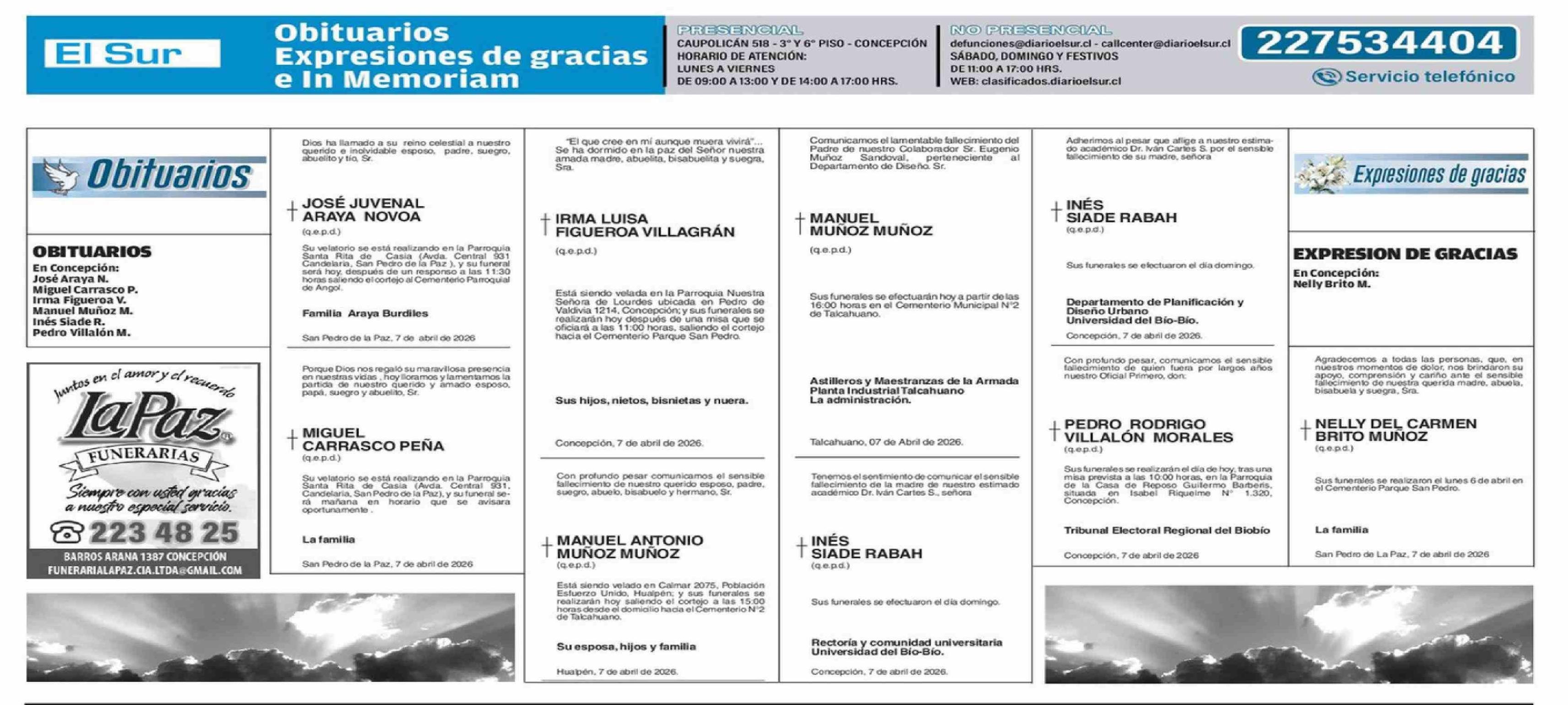 Obituarios Expresiones de gracias e In Memoriam