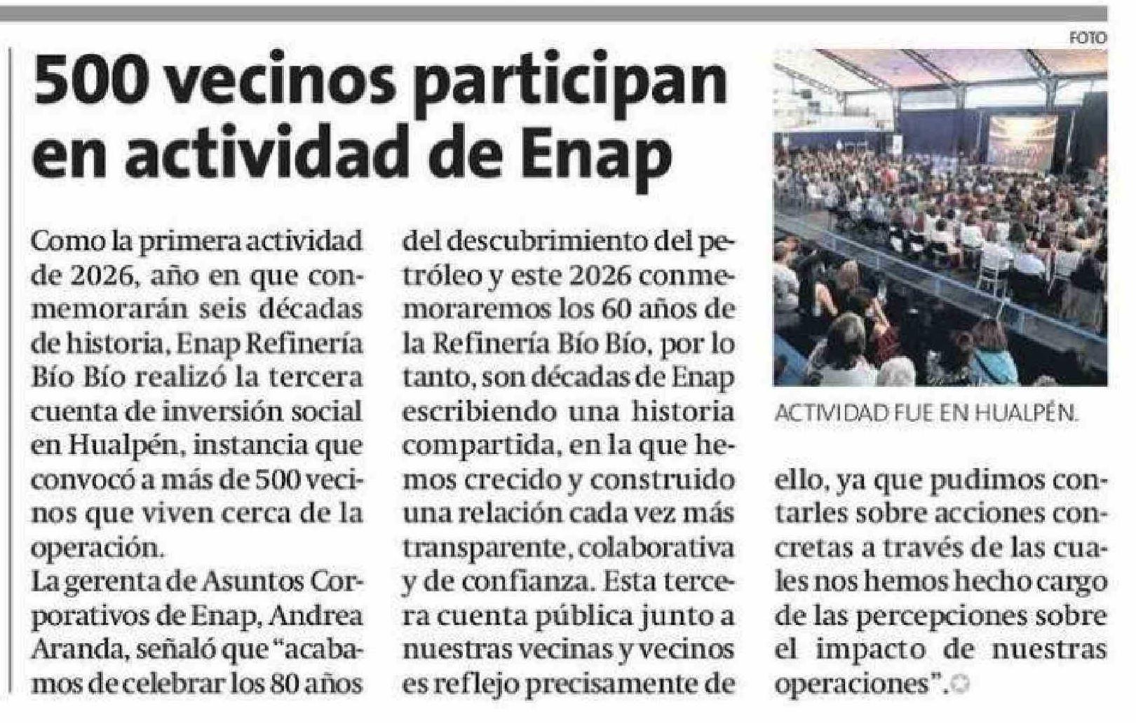 500 Vecinos participan en actividad de Enap