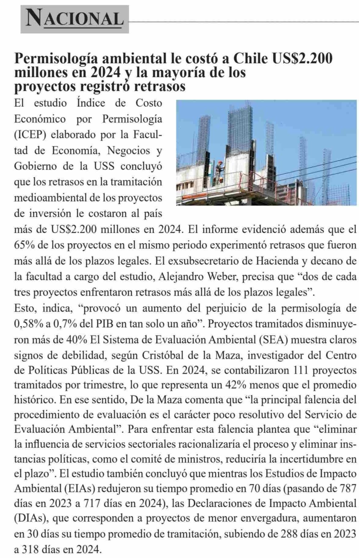 Título: Permisología ambiental le costó a Chile USS2.200 millones en 2024 y la mayoría de los proyectos registró retrasos