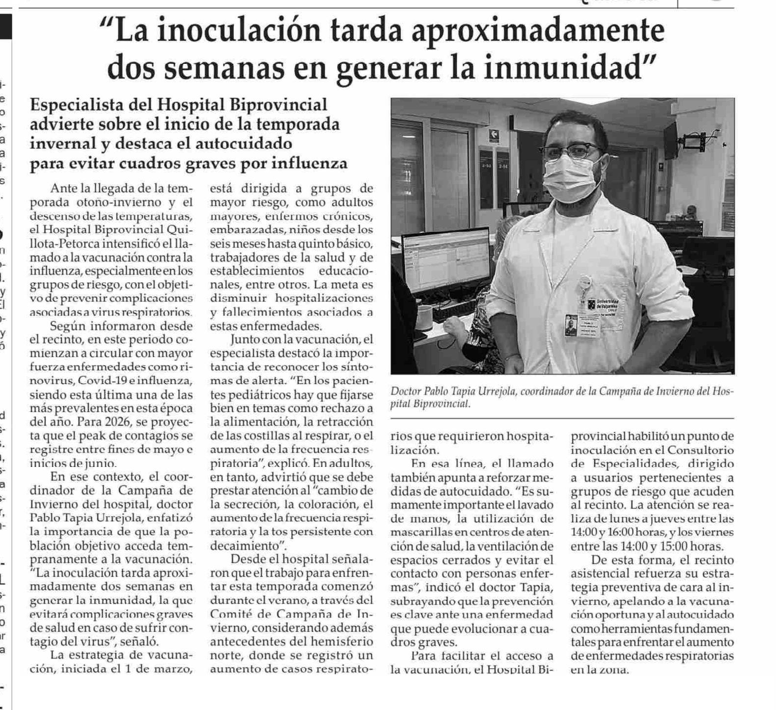 “La inoculación tarda aproximadamente dos semanas en generar la inmunidad”