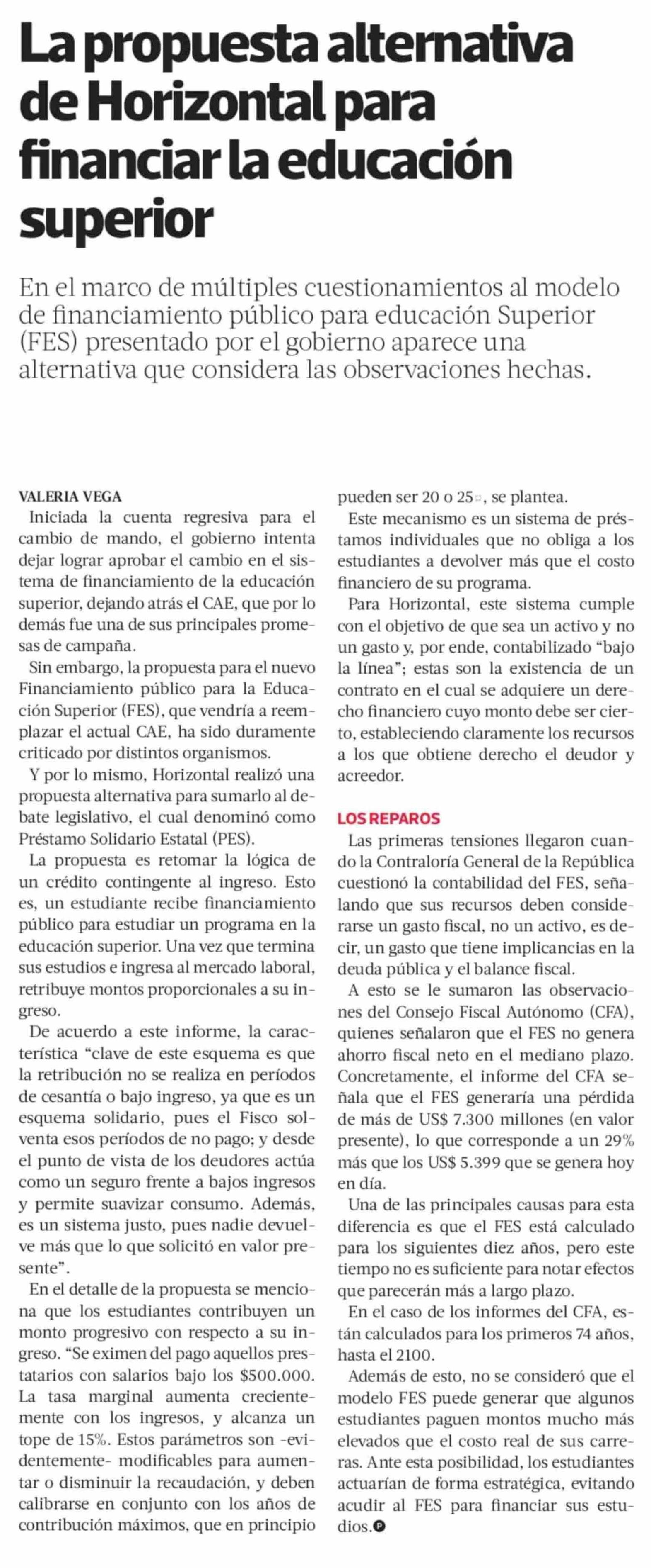 La propuesta alternativa de Horizontal para financiar la educación superior