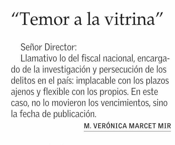 CARTAS: “Temor a la vitrina”