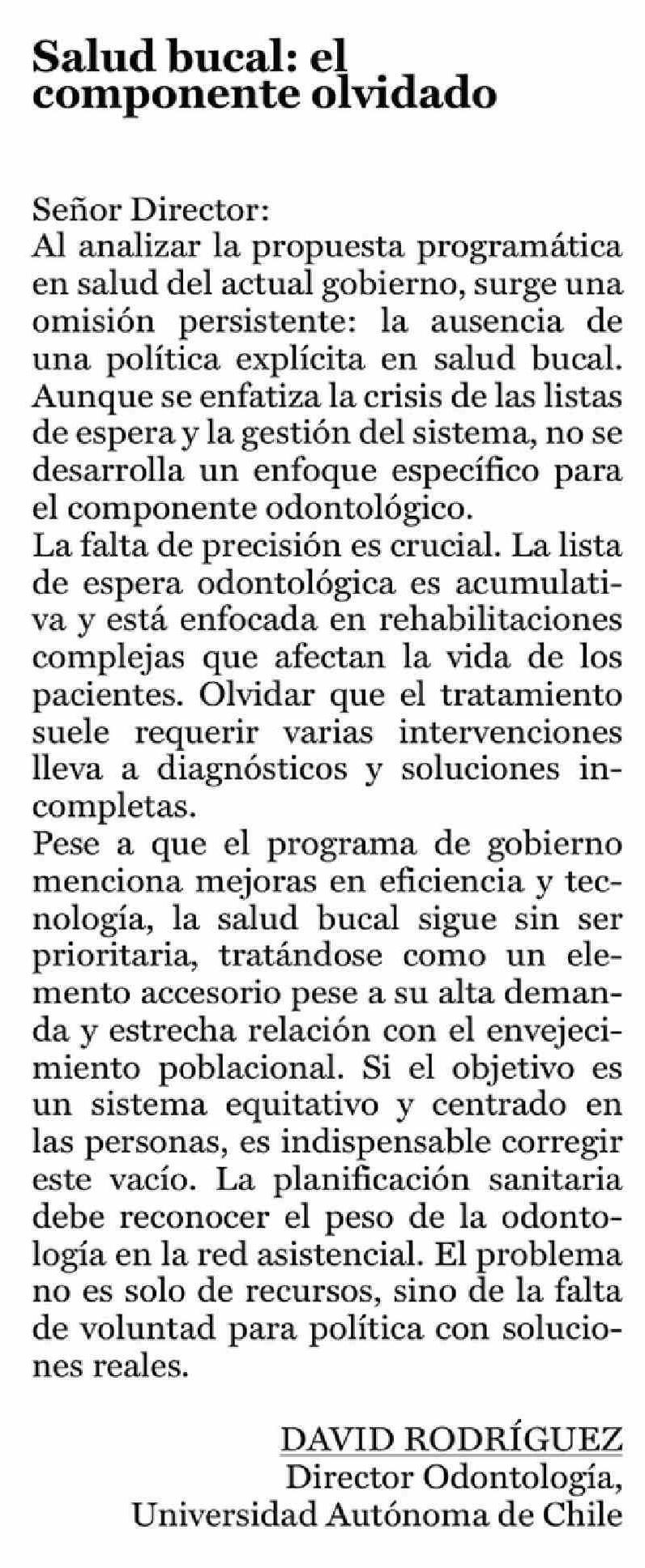 Cartas: Salud bucal: el componente olvidado