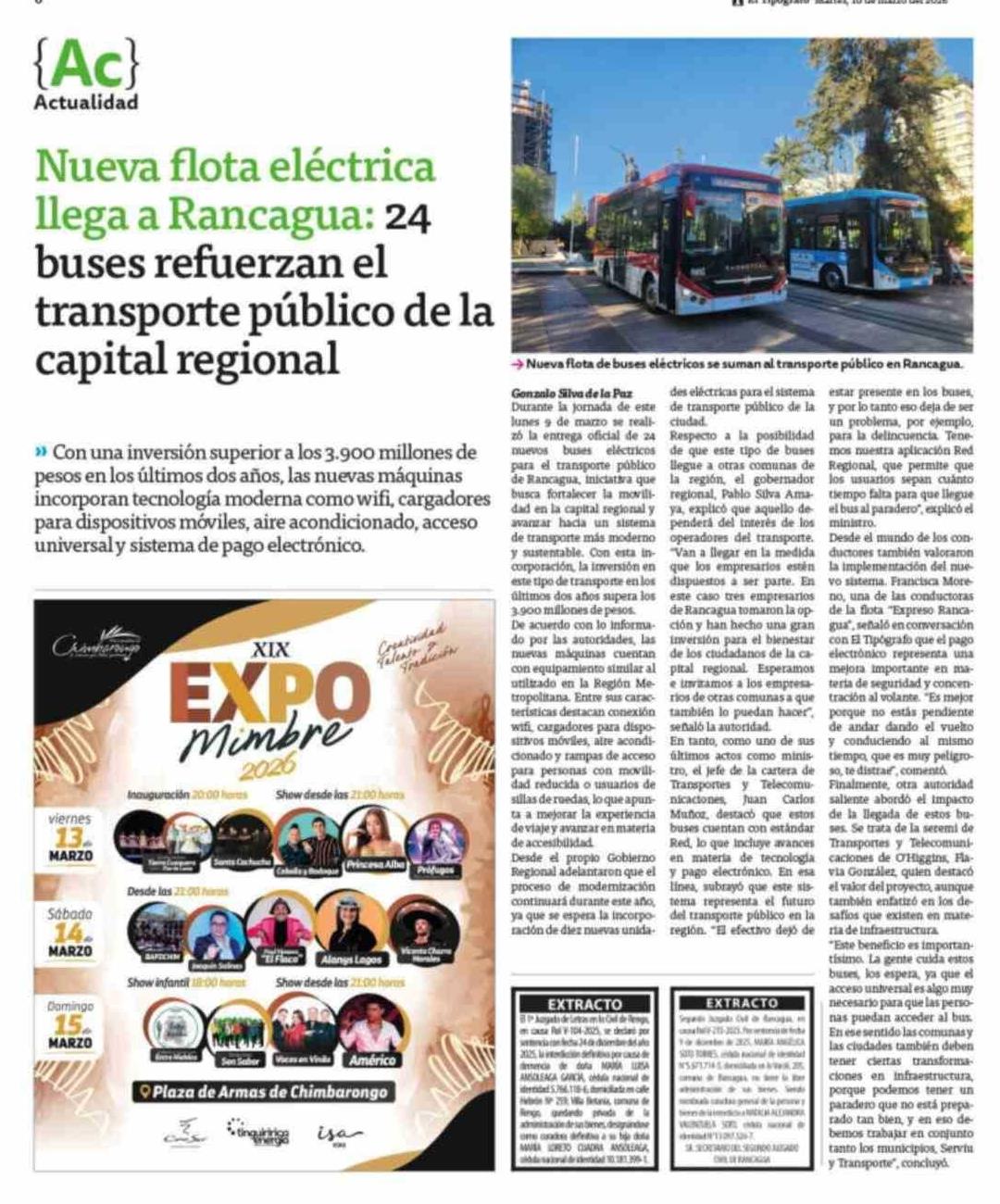 Nueva flota eléctrica llega a Rancagua: 24 buses refuerzan el transporte público de la capital regional