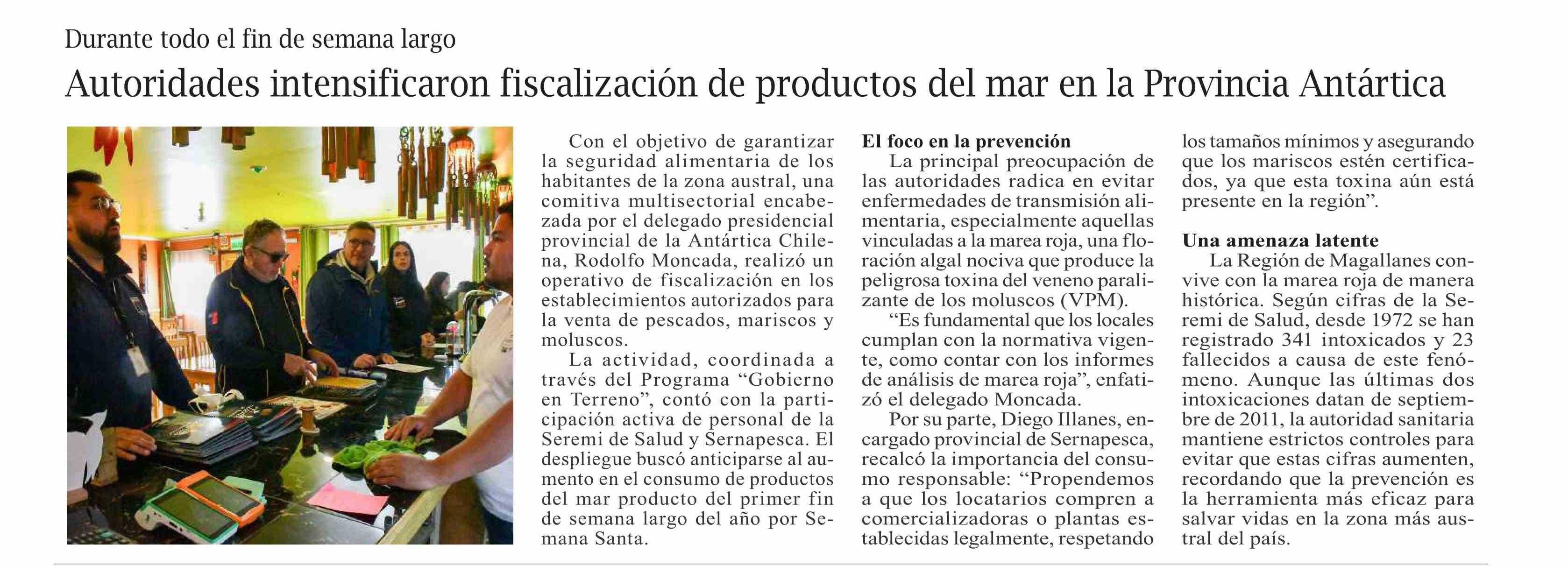 Título: Autoridades intensificaron fiscalización de productos del mar en la Provincia Antártica