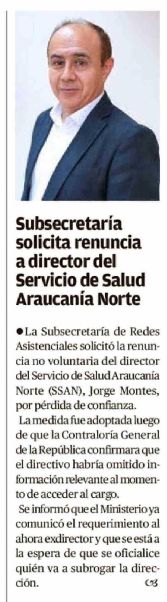 Subsecretaría solicita renuncia a director del Servicio de Salud Araucania Norte