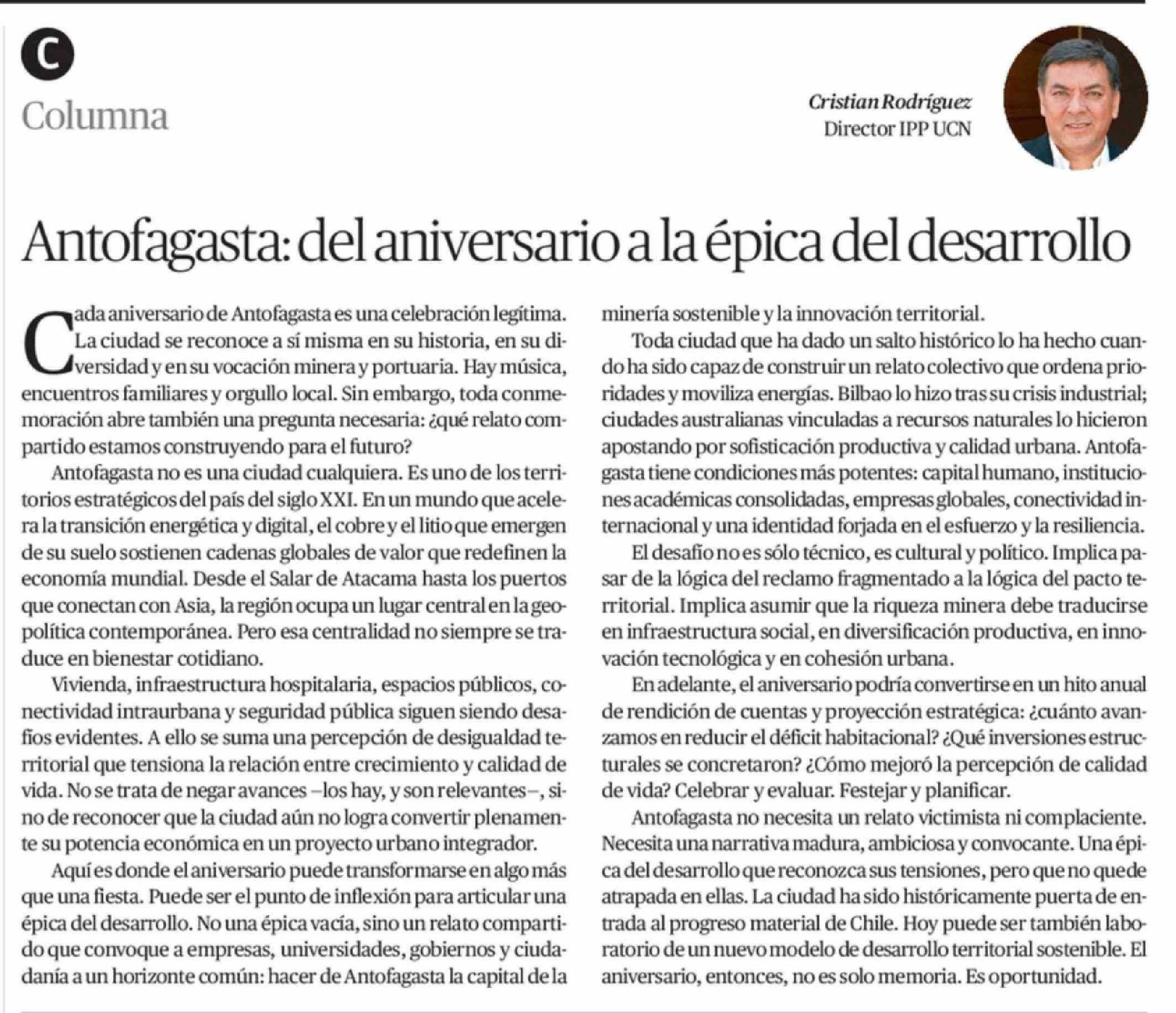 Columnas de Opinión: Antofagasta: del aniversario a la épica del desarrollo