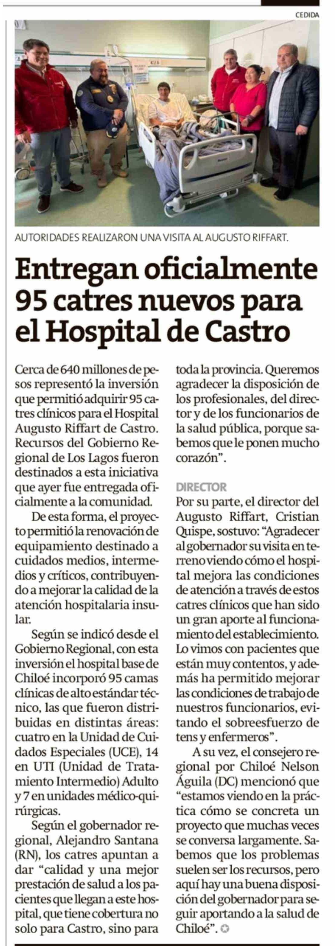 Entregan oficialmente 95 catres nuevos para el Hospital de Castro