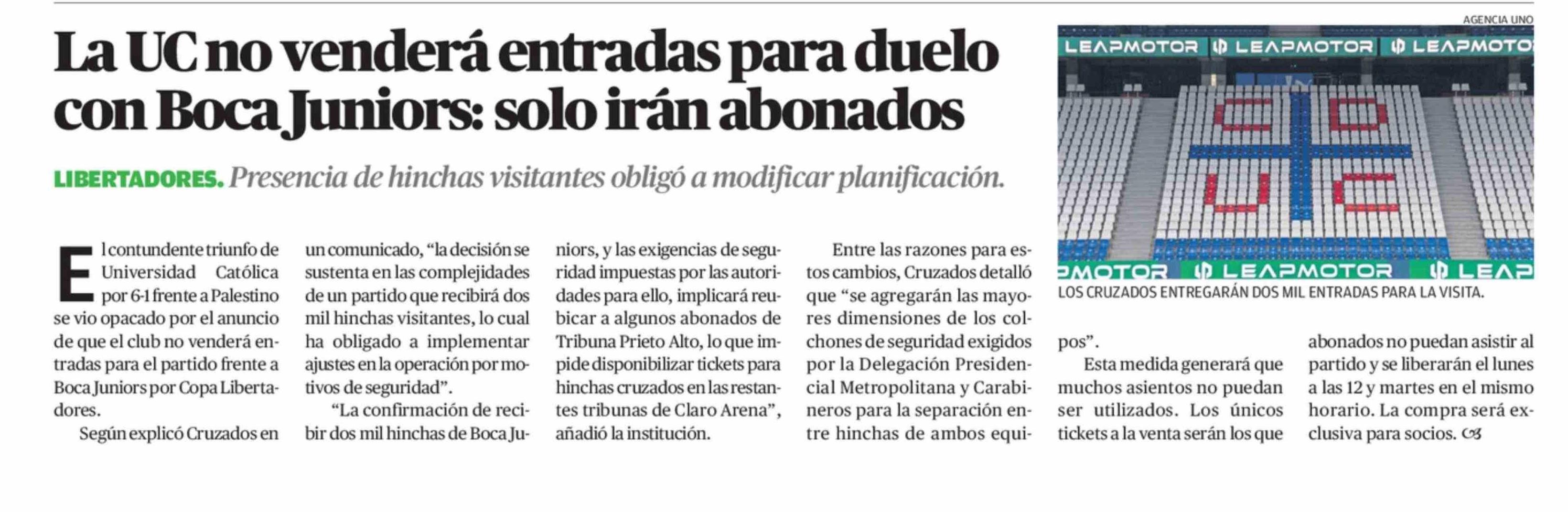La UCno venderá entradas para duelo con Boca Juniors: solo irán abonados