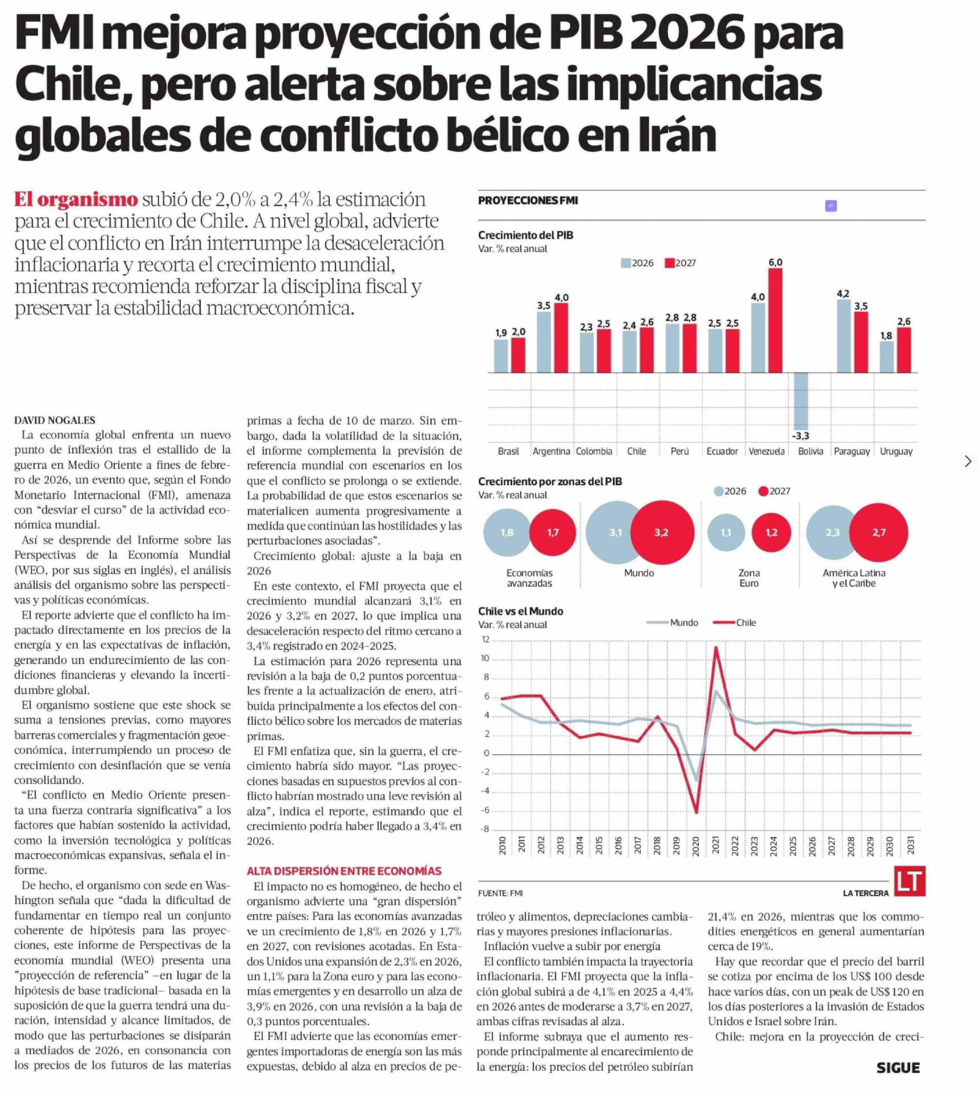 FMI mejora proyección de PIB 2026 para Chile, pero alerta sobre las implicancias globales de conflicto bélico en Irán