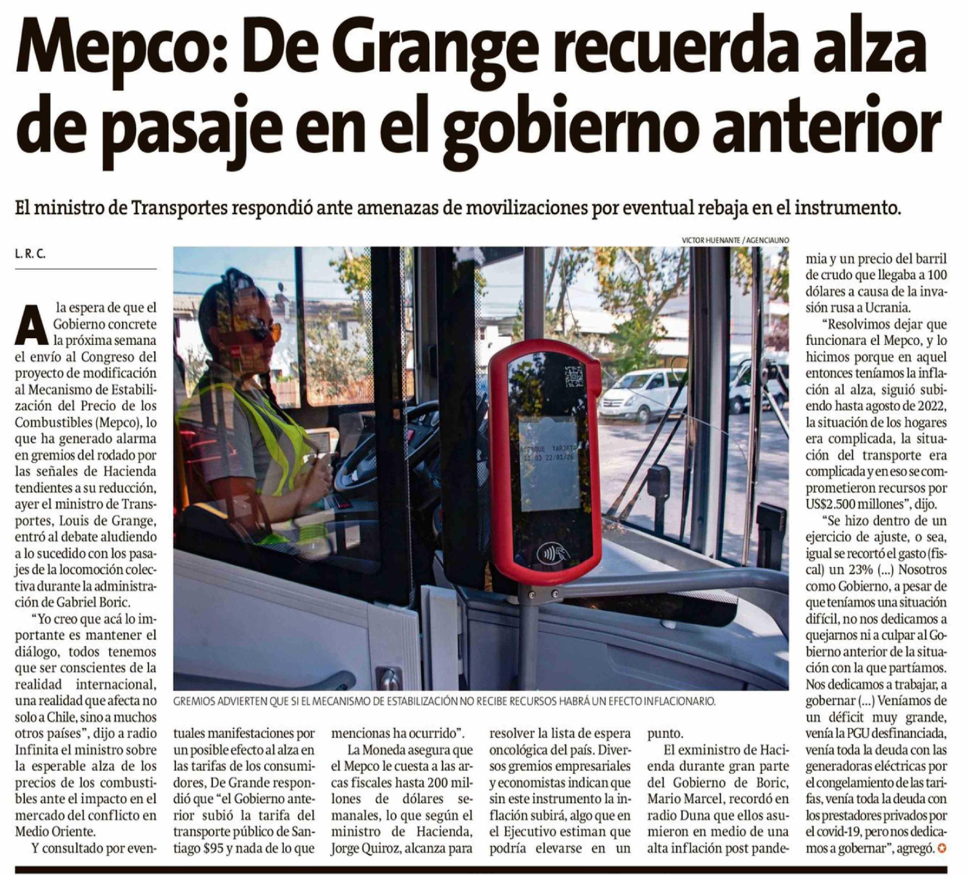Mepco: De Grange recuerda alza de pasaje en el gobierno anterior
