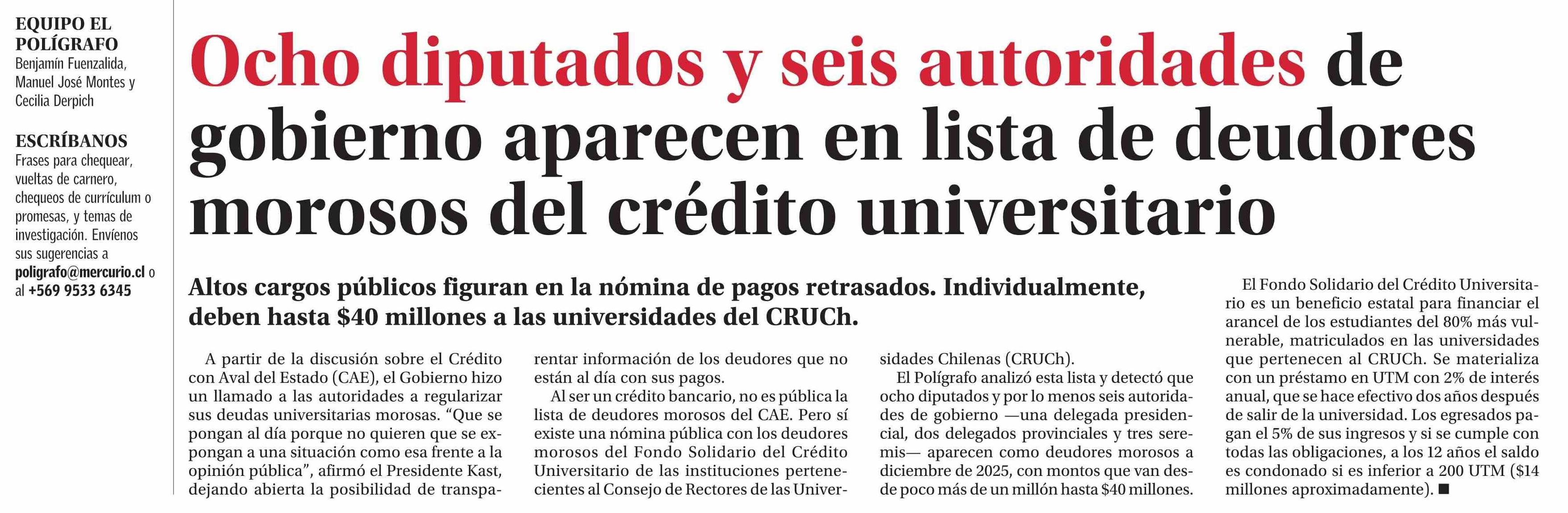 Ocho diputados y seis autoridades de gobierno aparecen en lista de deudores morosos del crédito universitario