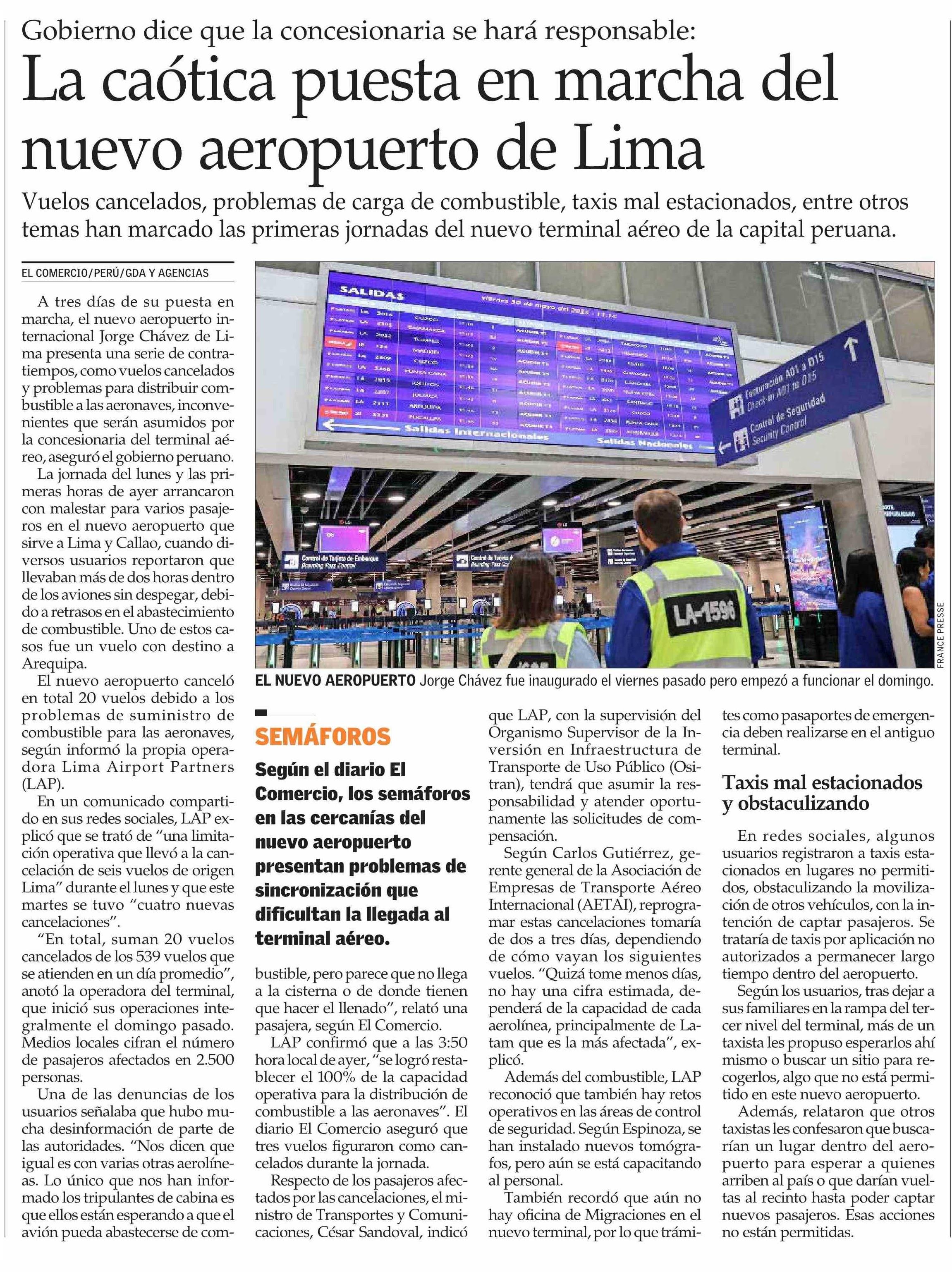 La caótica puesta en marcha del nuevo aeropuerto de Lima