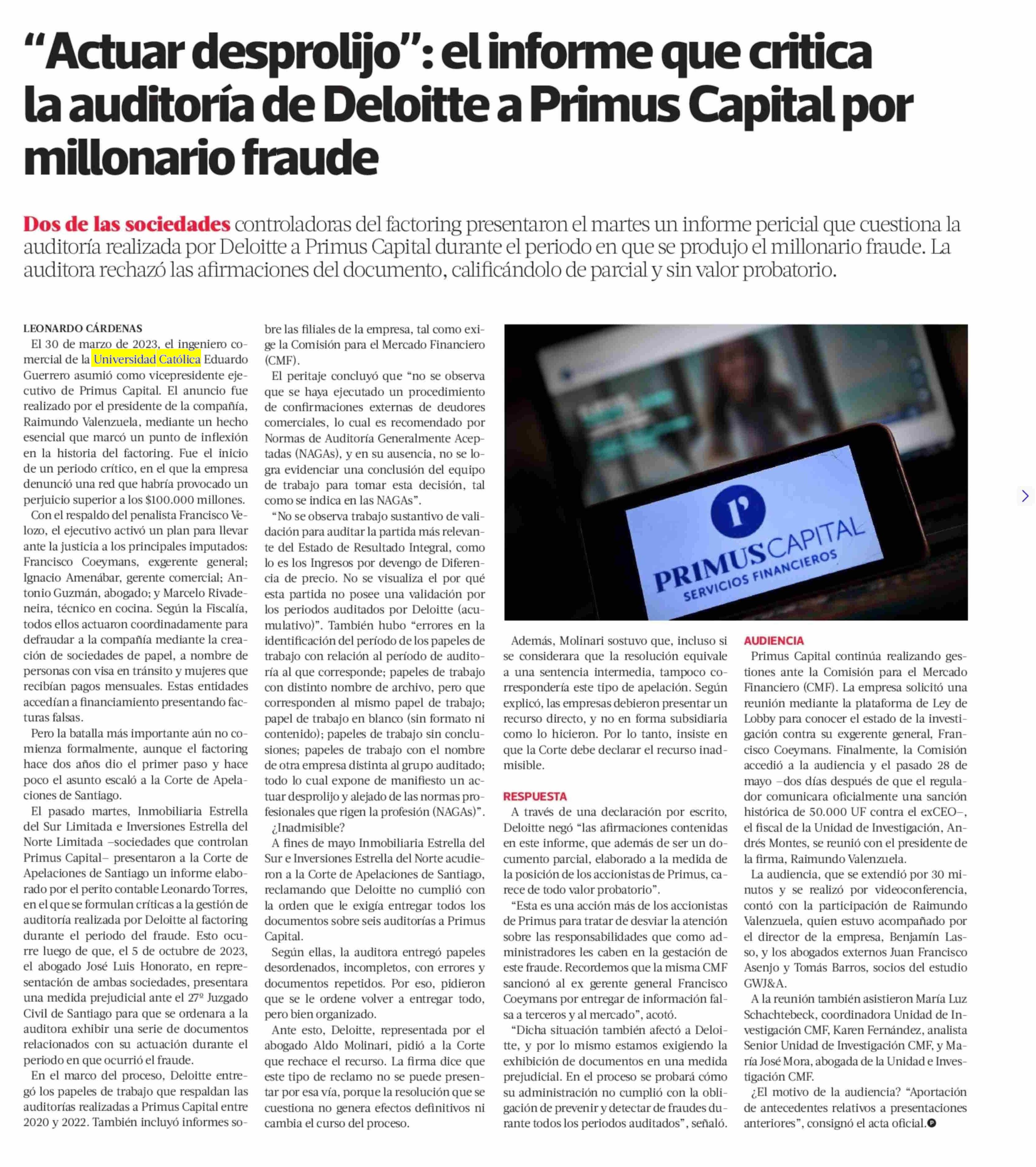 “Actuar desprolijo”: el informe que crítica la auditoría de Deloitte a Primus Capital por millonario fraude