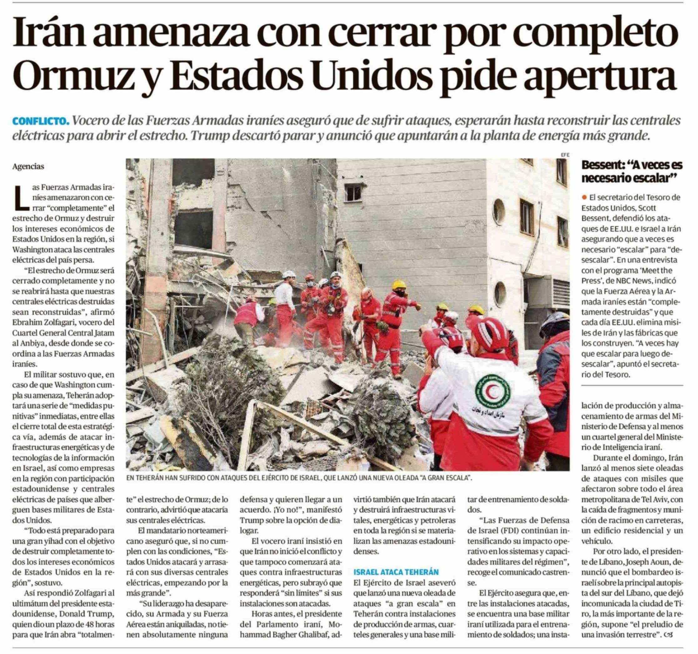 Iran amenaza con cerrar por completo Ormuz y Estados Unidos pide apertura