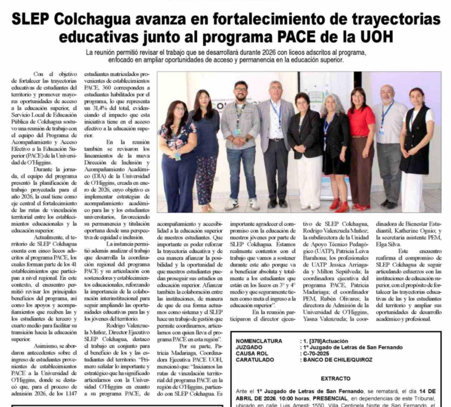 SLEP Colchagua avanza en fortalecimiento de trayectorias educativas junto al programa PACE de la UOH