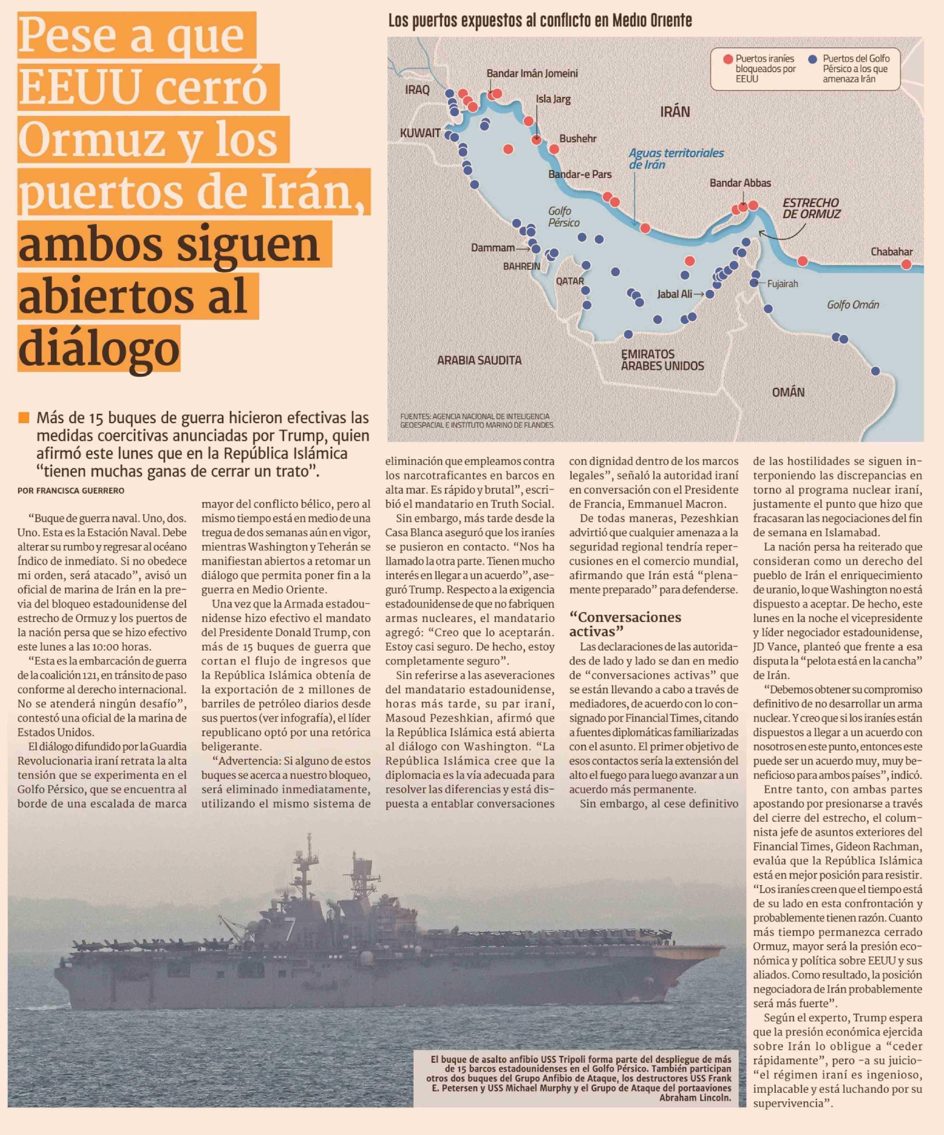 Pese a que EEUU cerró Ormuz y los puertos de Irán, ambos siguen abiertos al diálogo