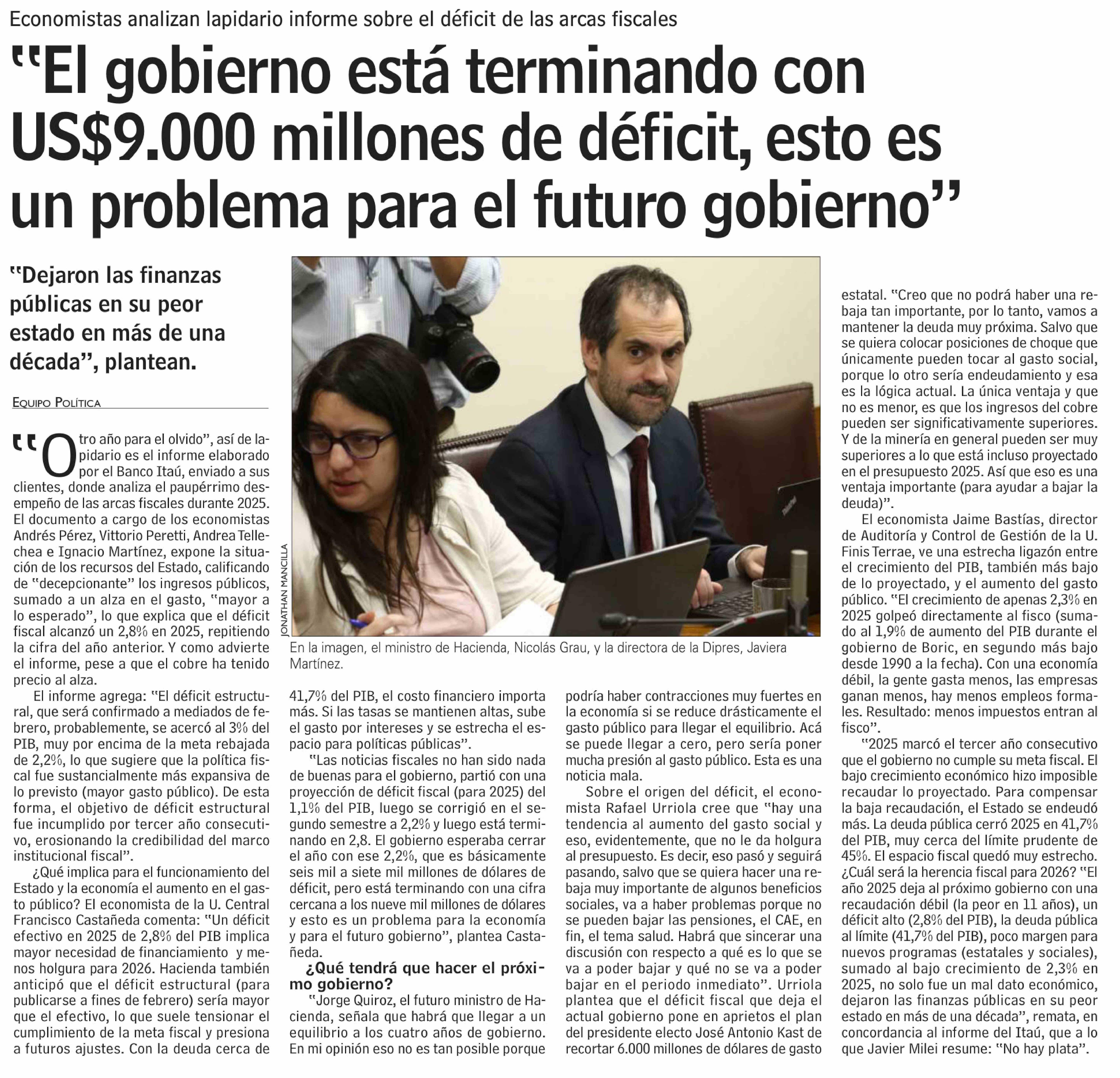 "El gobierno está terminando con US$9.000 millones de déficit, esto es un problema para el futuro gobierno"