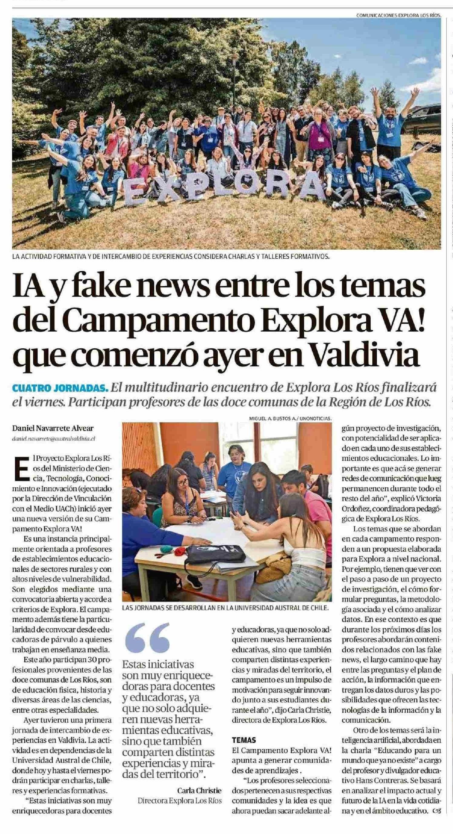 IA y fake news entre los temas del Campamento Explora VA! que comenzó ayer en Valdivia