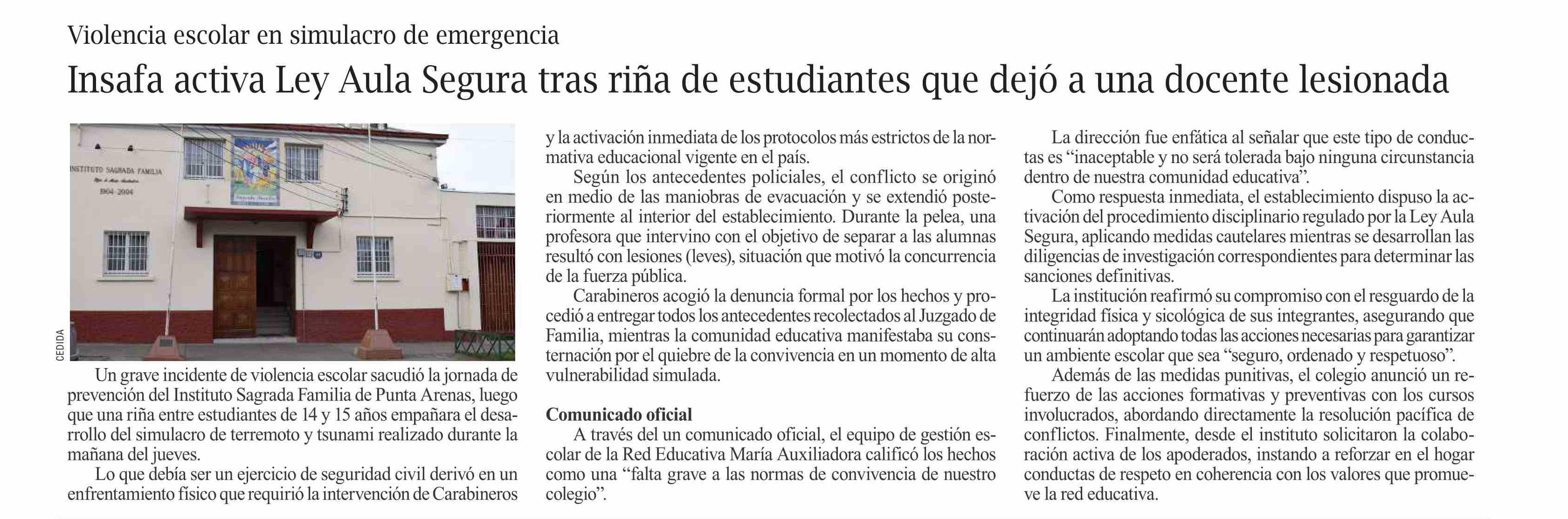 Insafa activa Ley Aula Segura tras riña de estudiantes que dejó a una docente lesionada