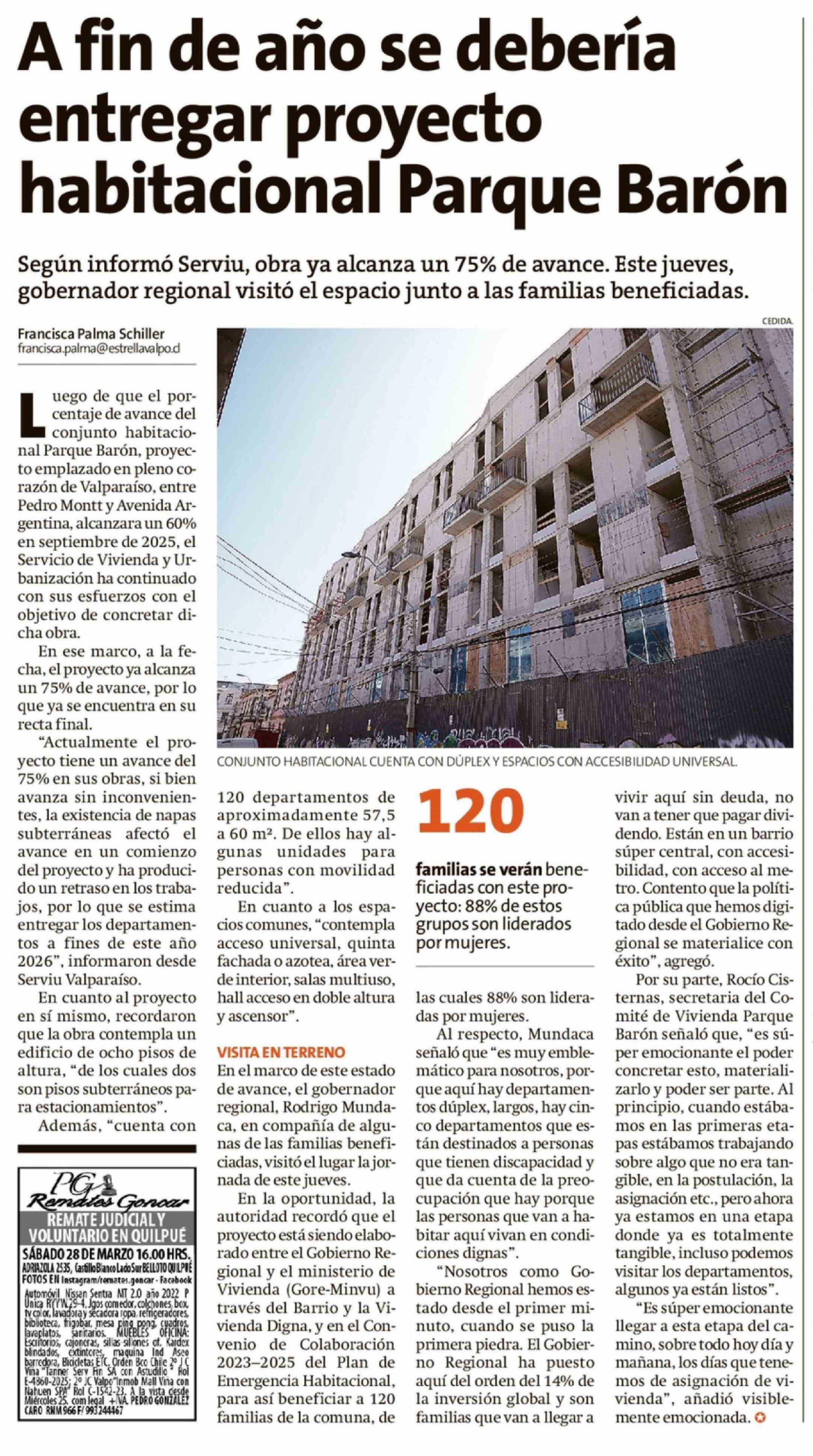 A fin de año se debería entregar proyecto habitacional Parque Barón