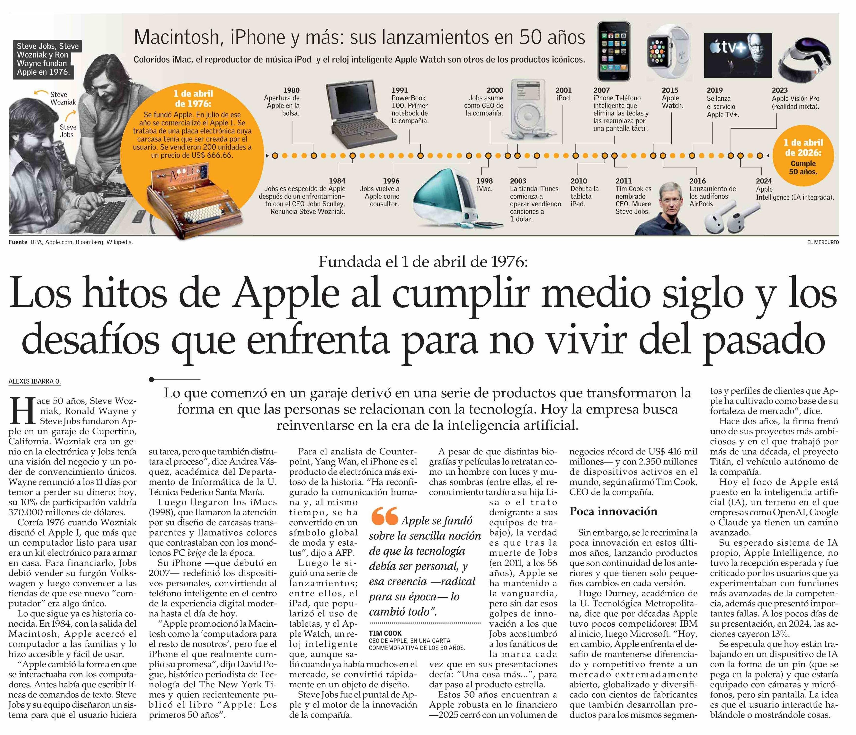 Los hitos de Apple al cumplir medio siglo y los desafíos que enfrenta para no vivir del pasado