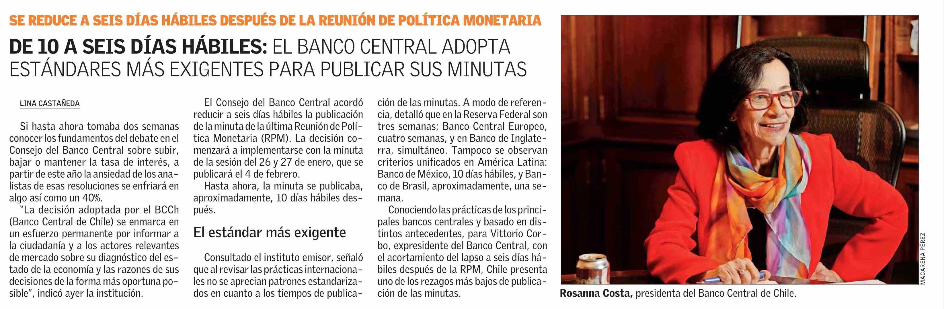 DE 10 A SEIS DÍAS HÁBILES: EL BANCO CENTRAL ADOPTA ESTÁNDARES MÁS EXIGENTES PARA PUBLICAR SUS MINUTAS
