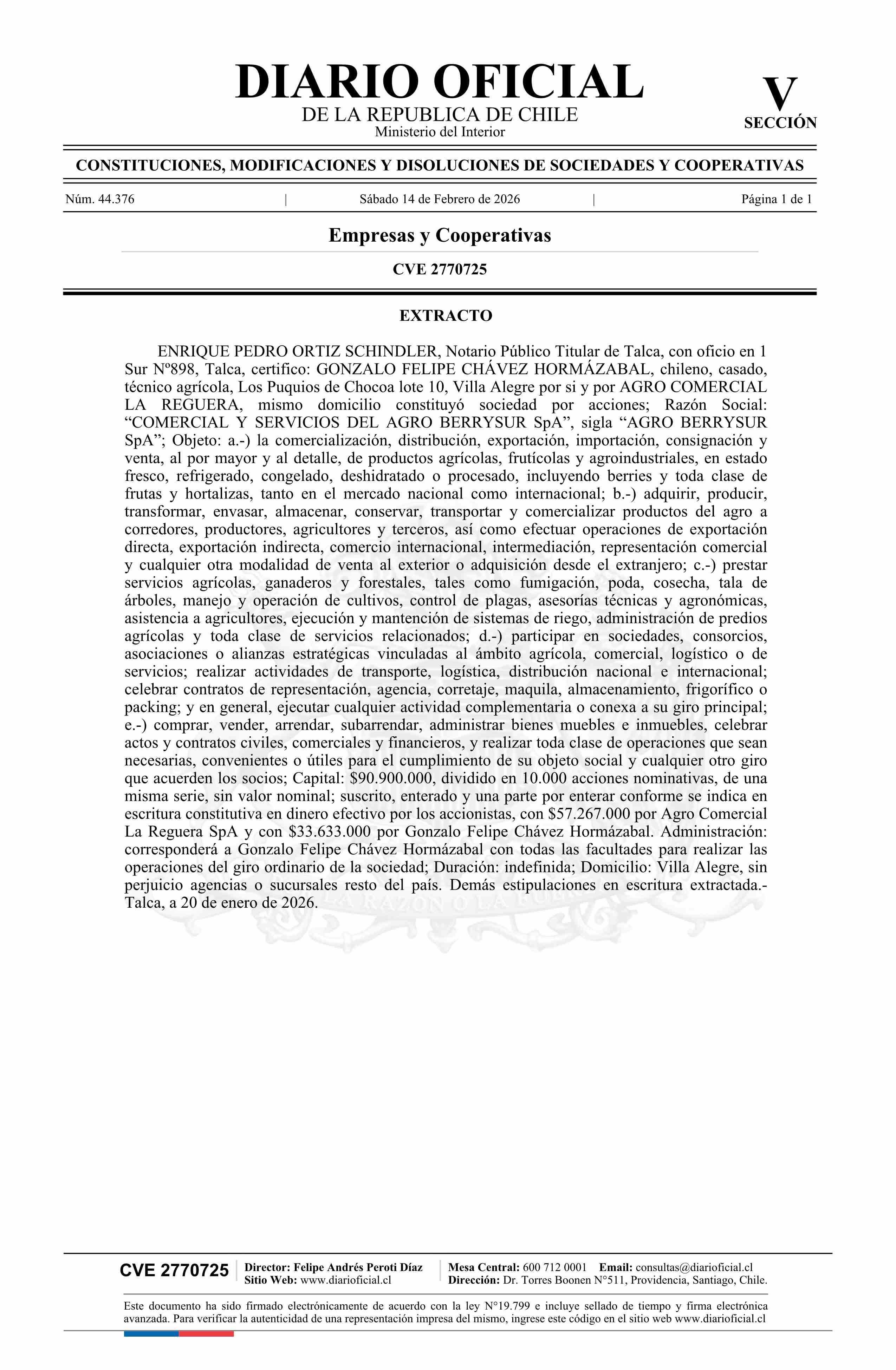 COMERCIAL Y SERVICIOS DEL AGRO BERRYSUR SpA