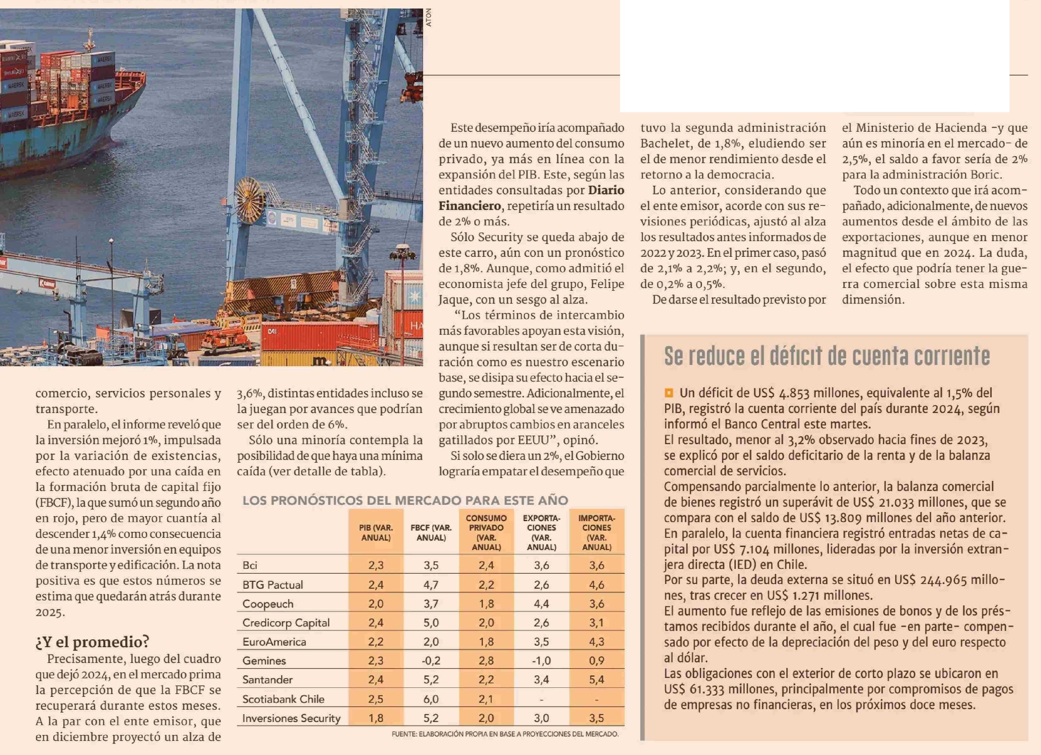 PIB de Chile cierra 2024 mejor a lo previsto y sienta camino para otro año de crecimiento sobre el 2%