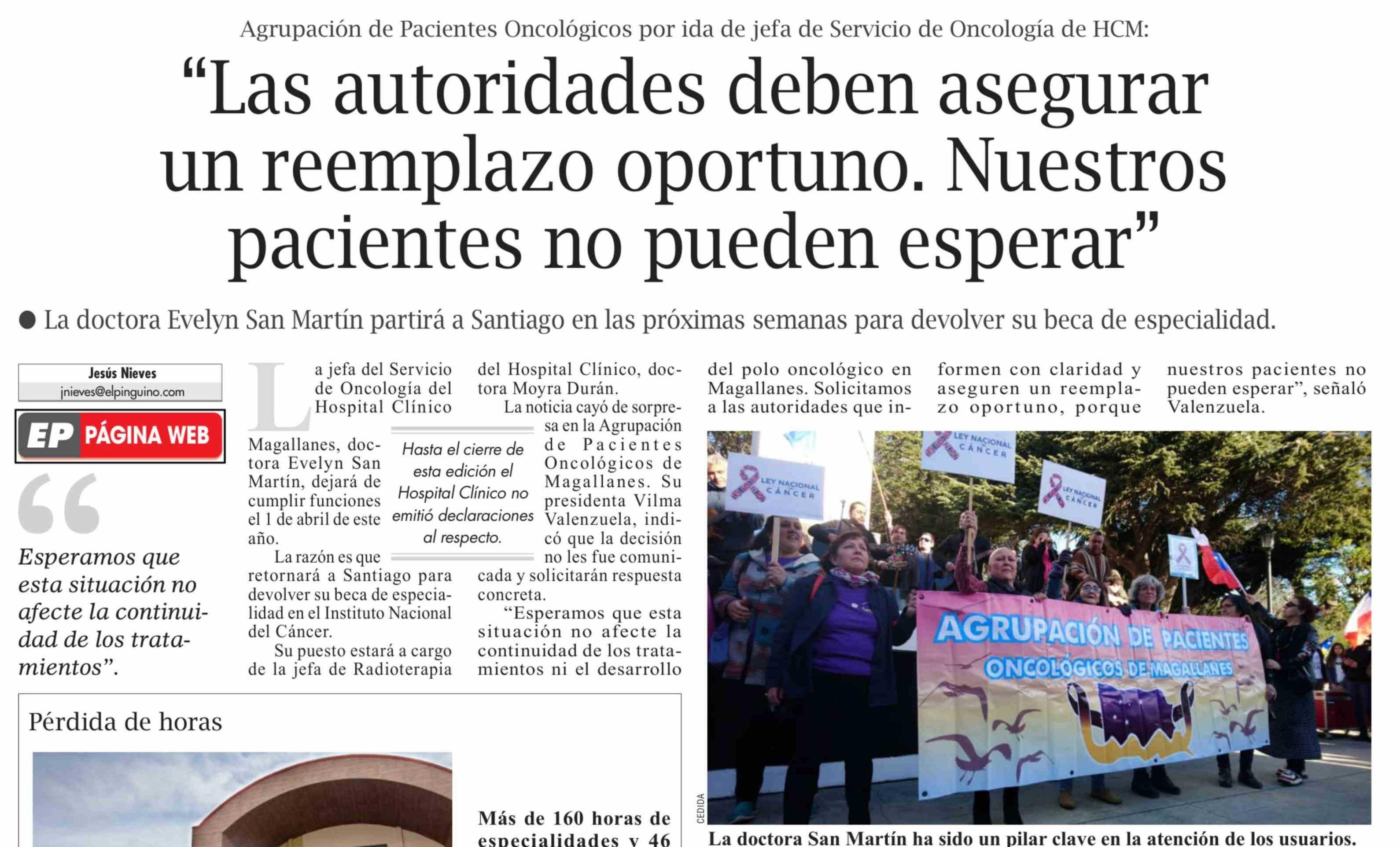Título: "Las autoridades deben asegurar un reemplazo oportuno. Nuestros pacientes no pueden esperar"