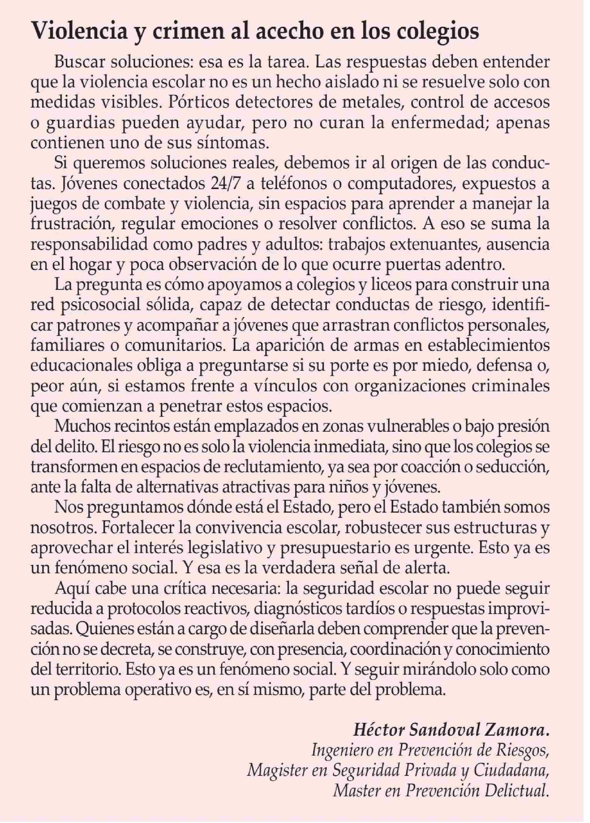 Título: CARTAS: Violencia y crimen al acecho en los colegios