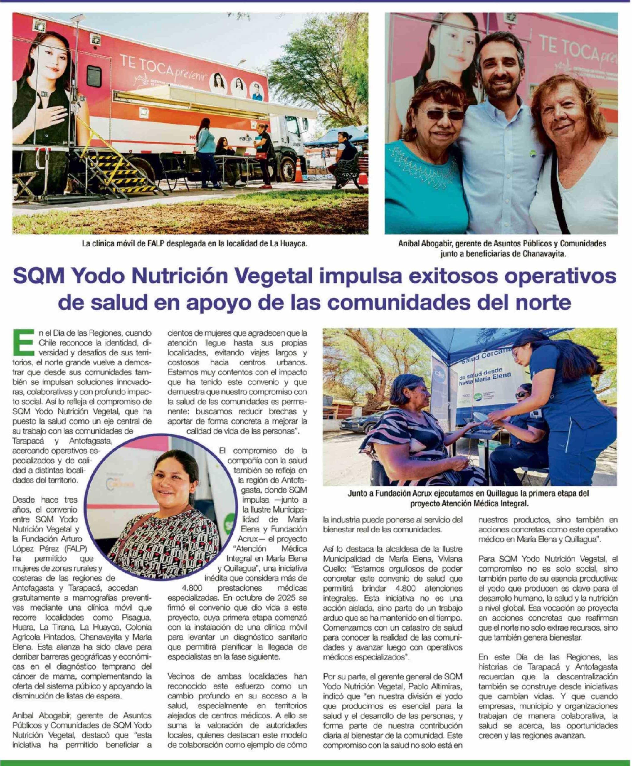 Título: SQM Yodo Nutrición Vegetal impulsa exitosos operativos de salud en apoyo de las comunidades del norte