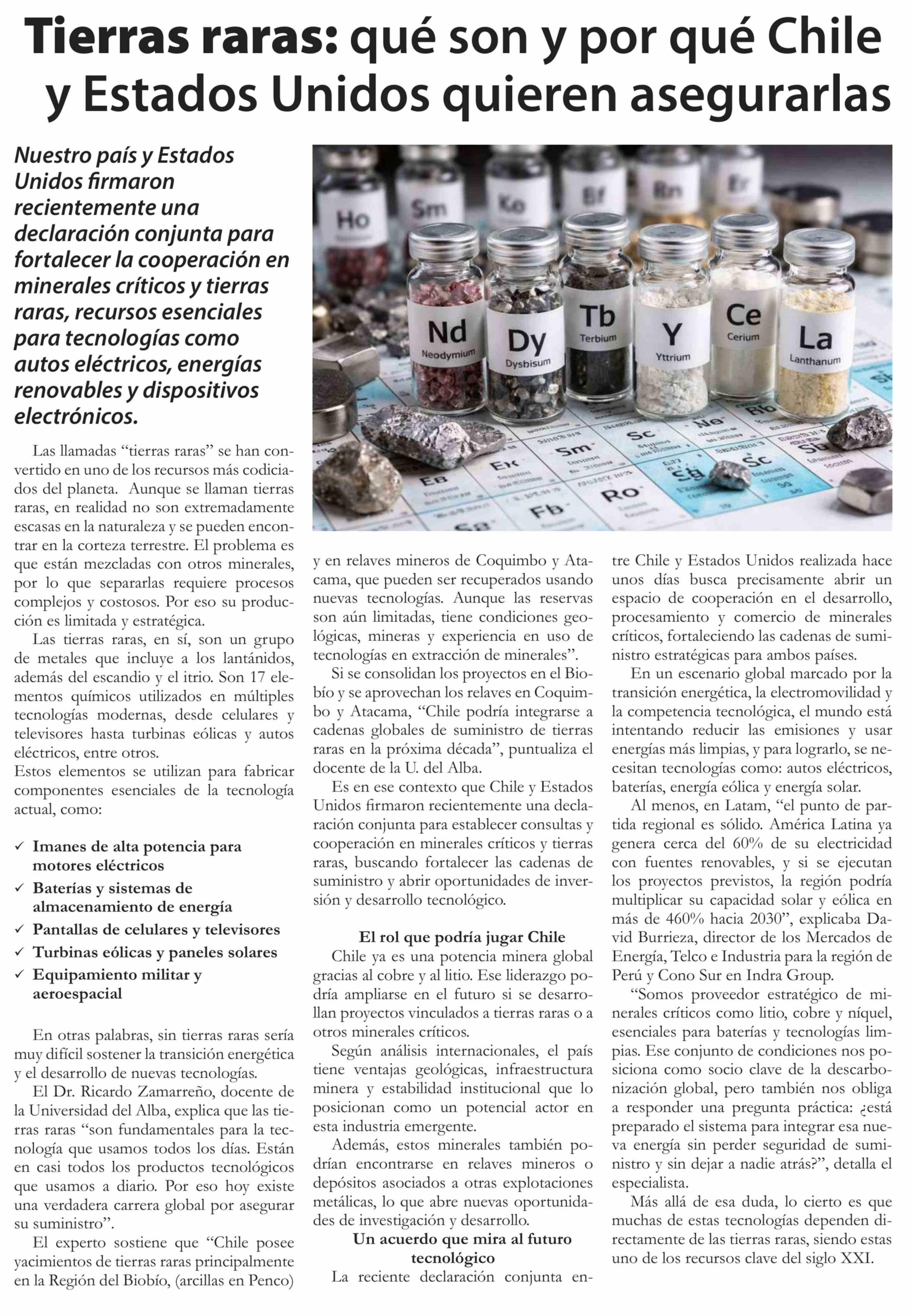 Título: Tierras raras: qué son y por qué Chile y Estados Unidos quieren asegurarlas