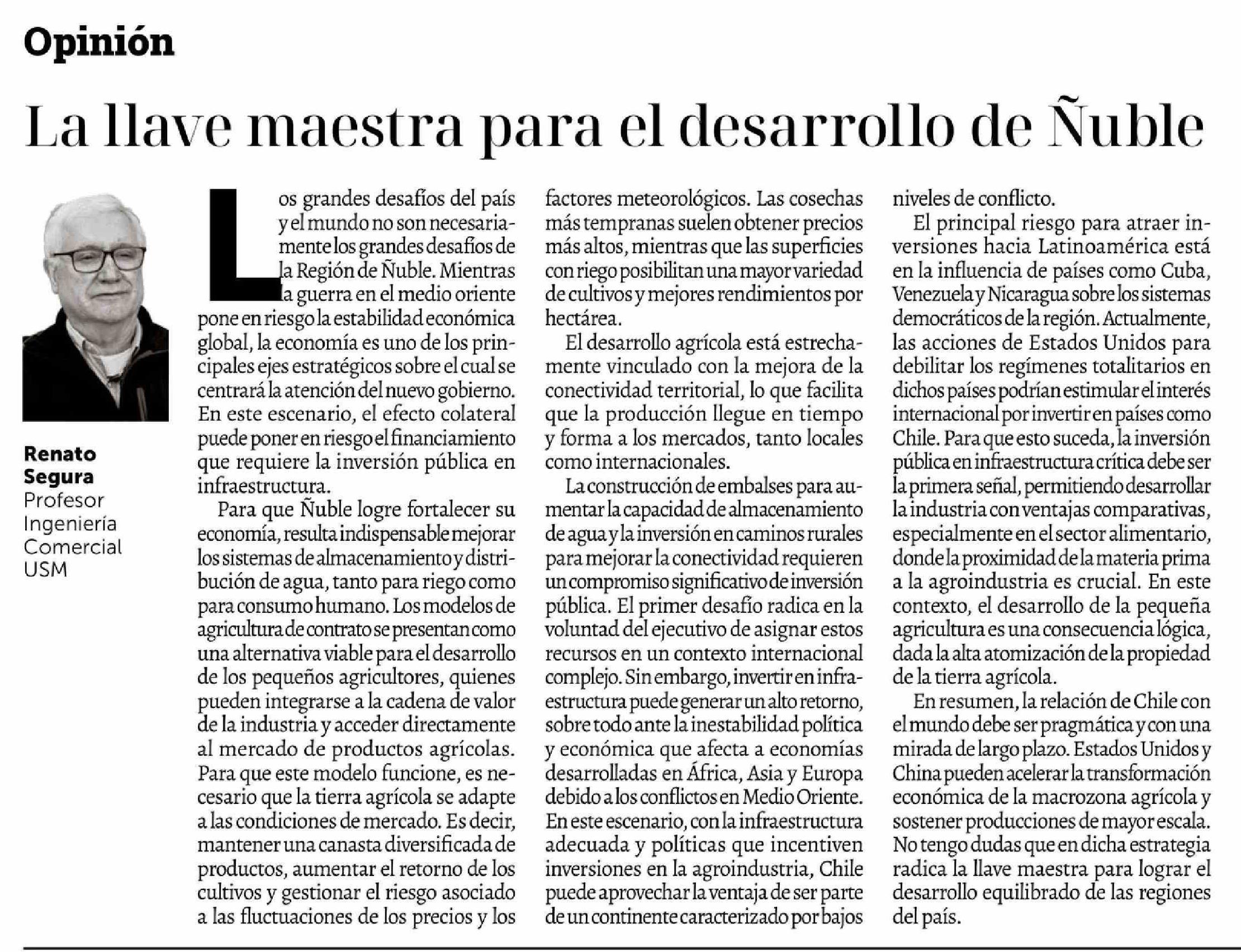 Columnas de Opinión: La llave maestra para el desarrollo de Ñuble