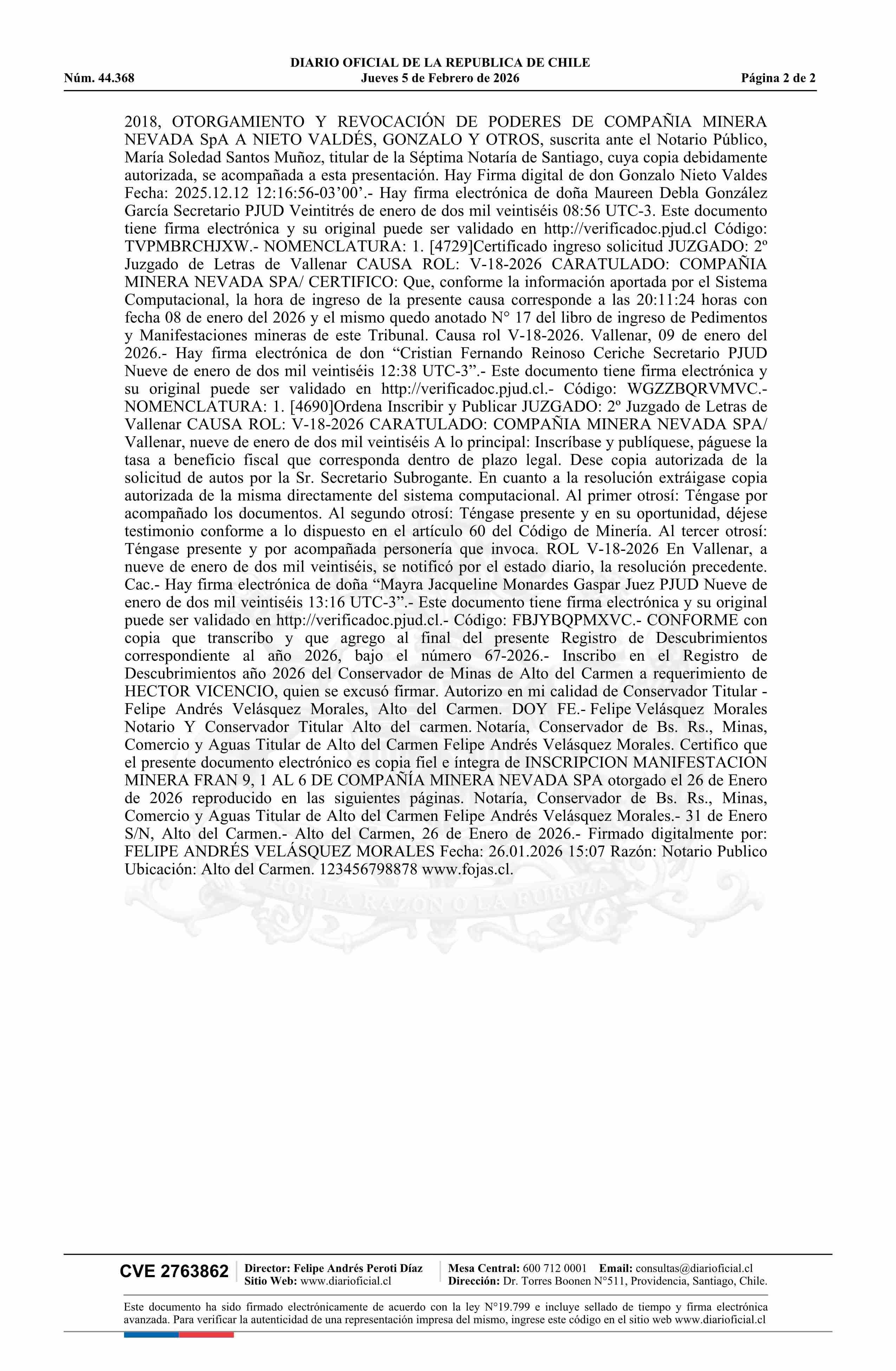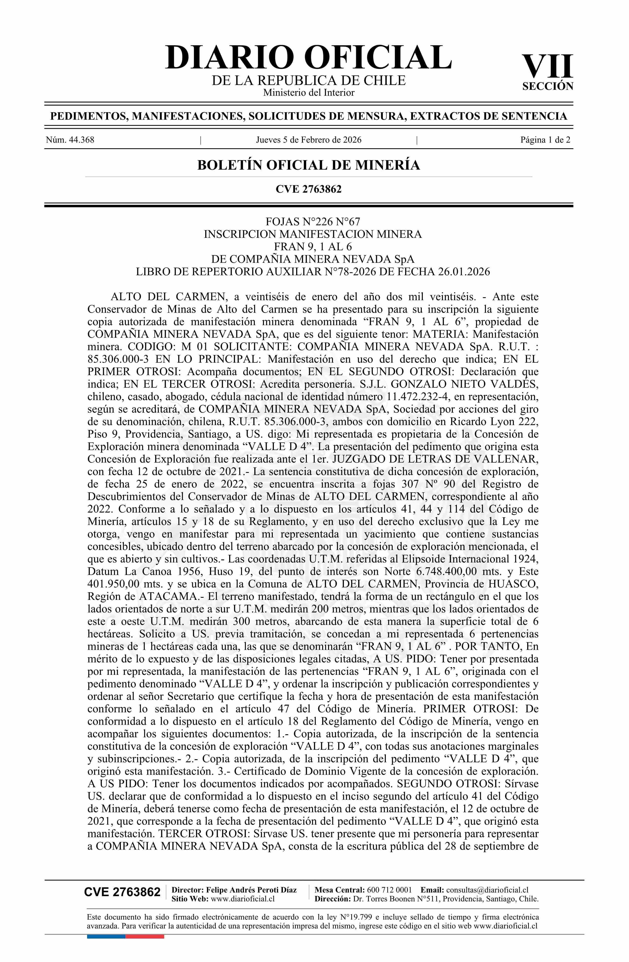 FRAN 9, 1 AL 6 / Compañía Minera Nevada SpA
