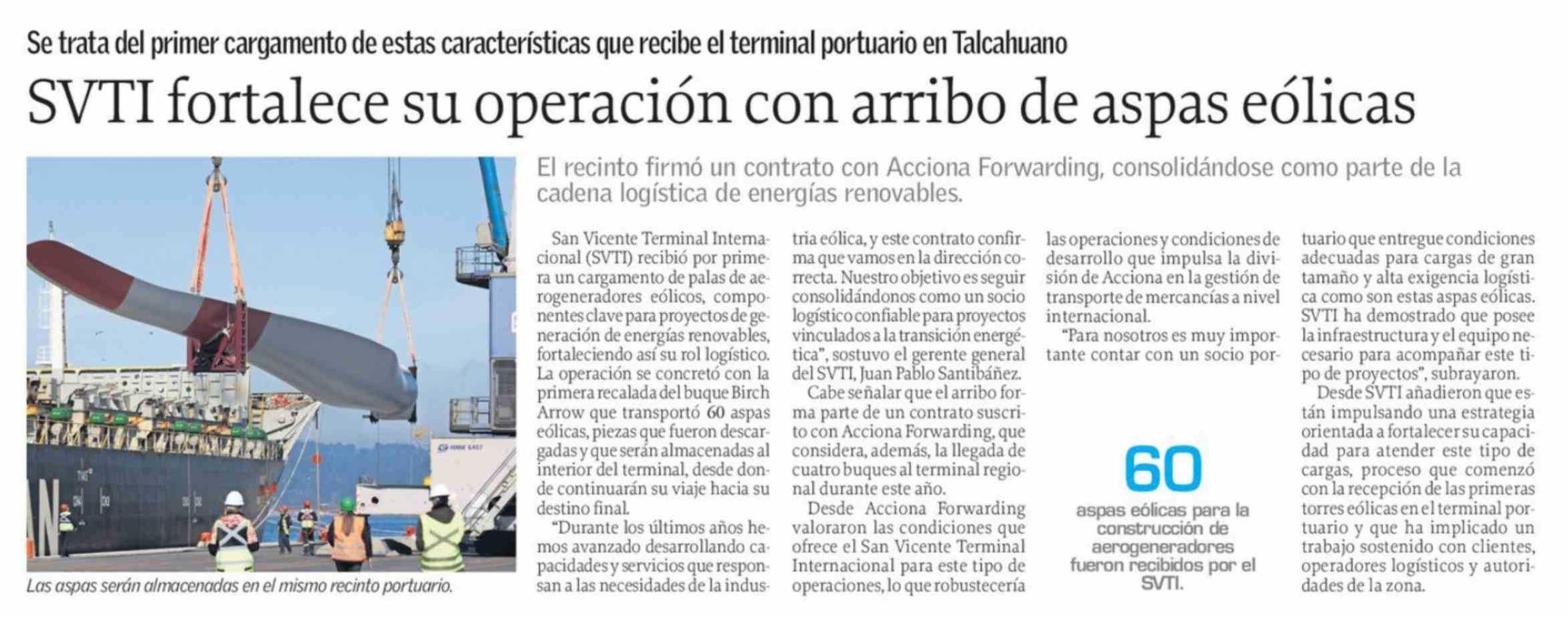 SVTI fortalece su operación con arribo de aspas eólicas