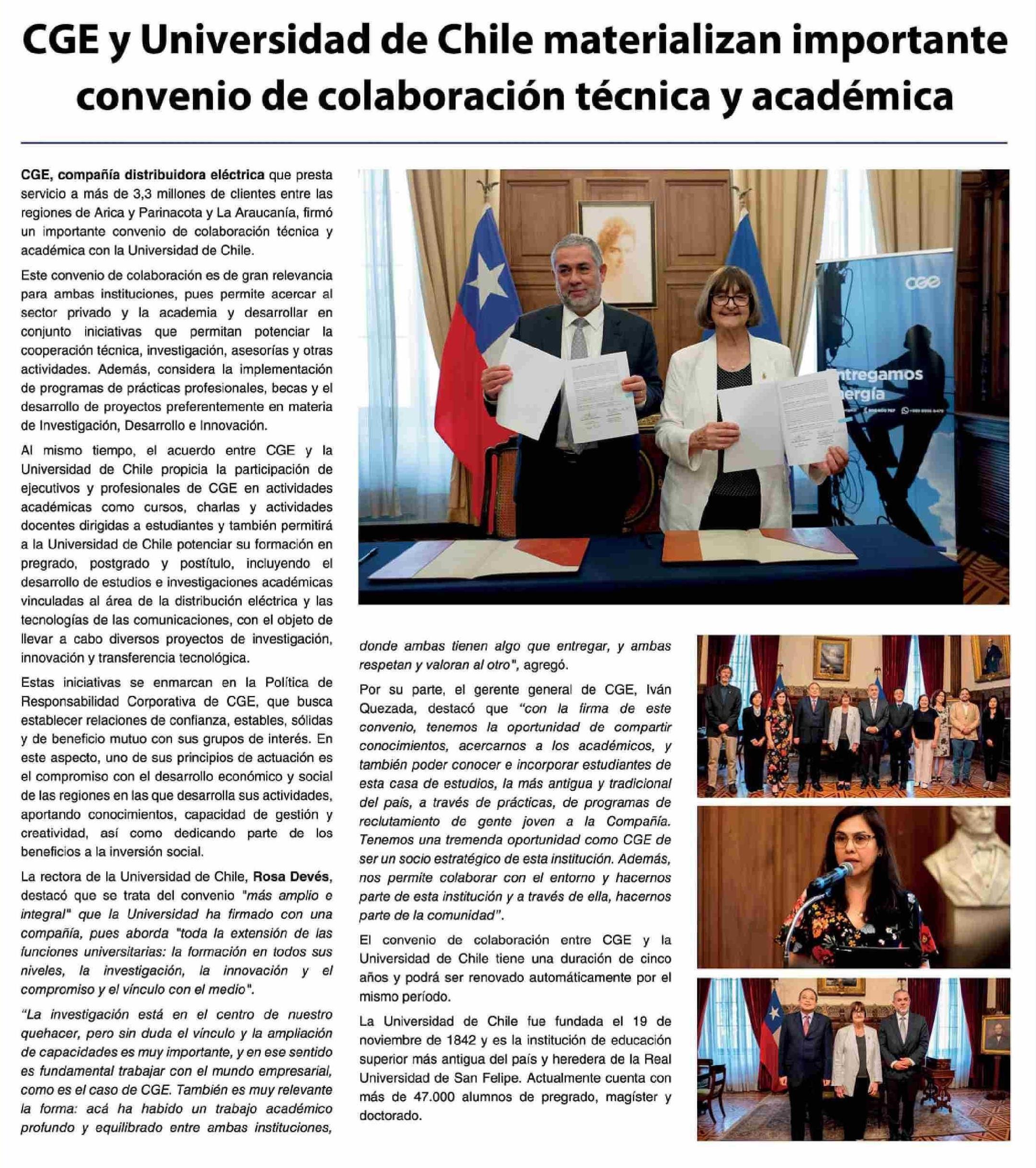 Aviso Universidad: CGE y Universidad de Chile materializan importante convenio de colaboración técnica y académica