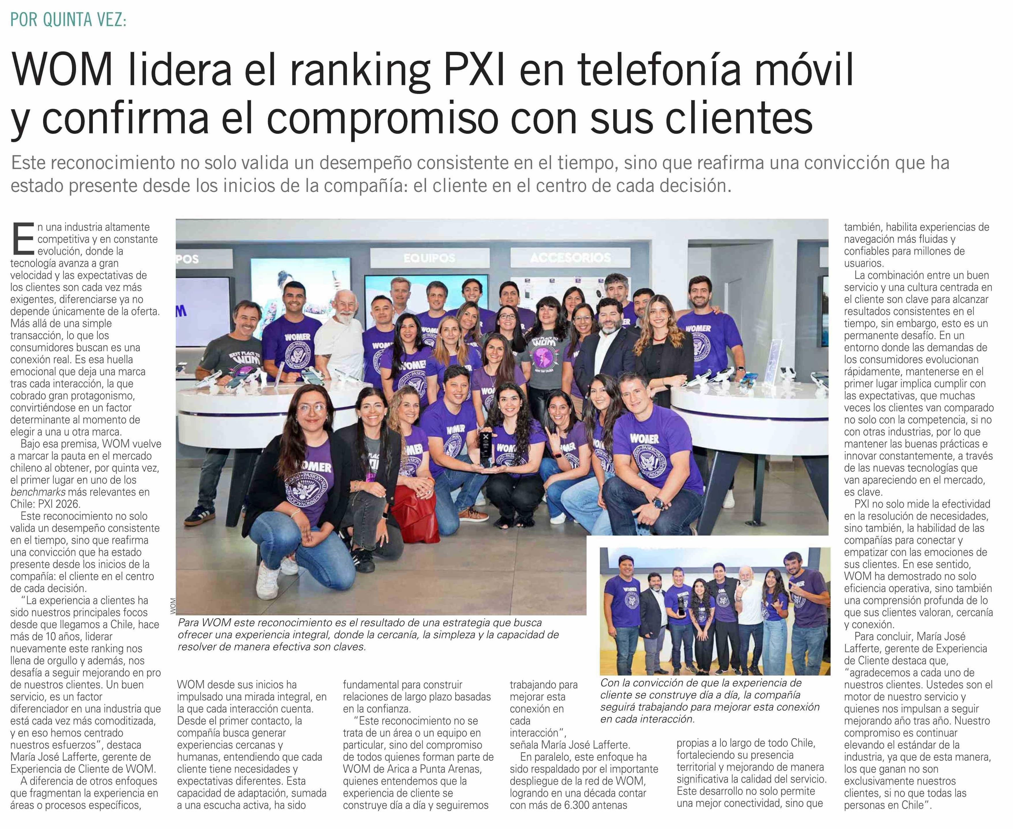 WOM lidera el ranking PXI en telefonía móvil y confirma el compromiso con sus clientes