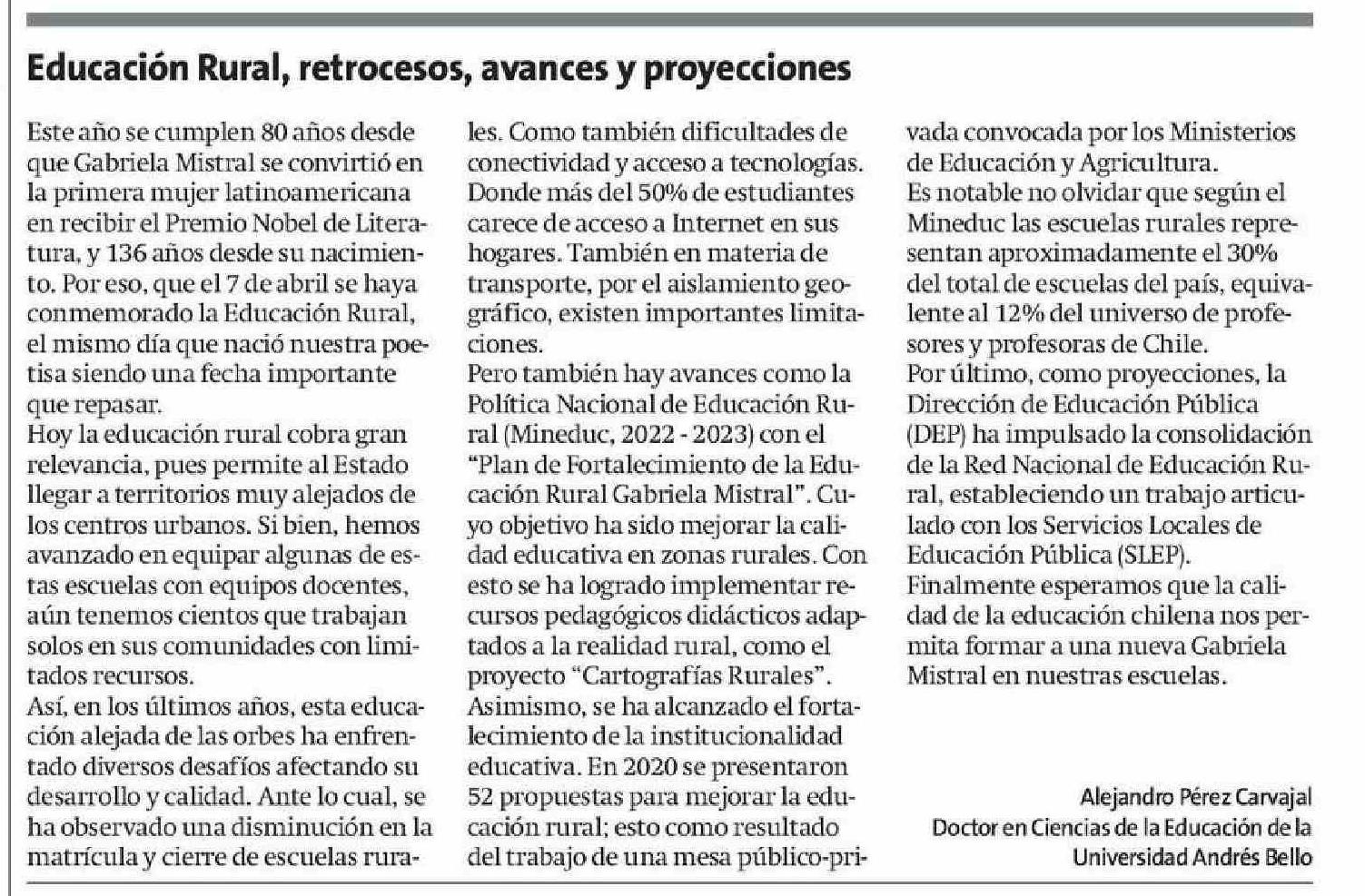 CARTAS: Educación Rural, retrocesos, avances y proyecciones