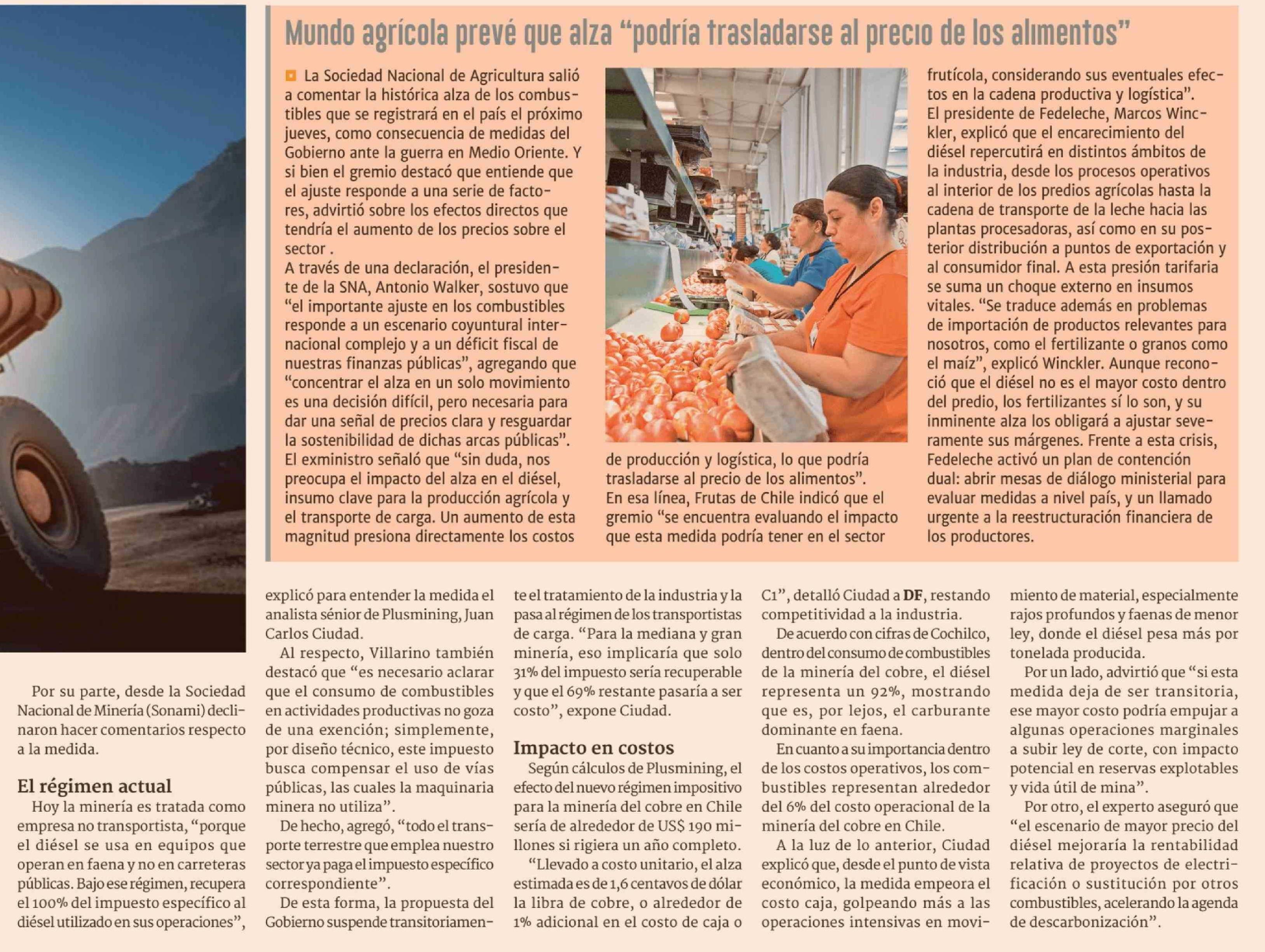 Grandes mineras golpean la mesa por cambio al impuesto al diésel y critican que asumirían el 74% del costo de la medida