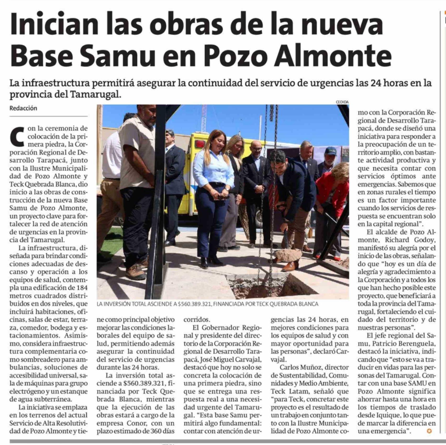 Inician las obras de la nueva Base Samu en Pozo Almonte