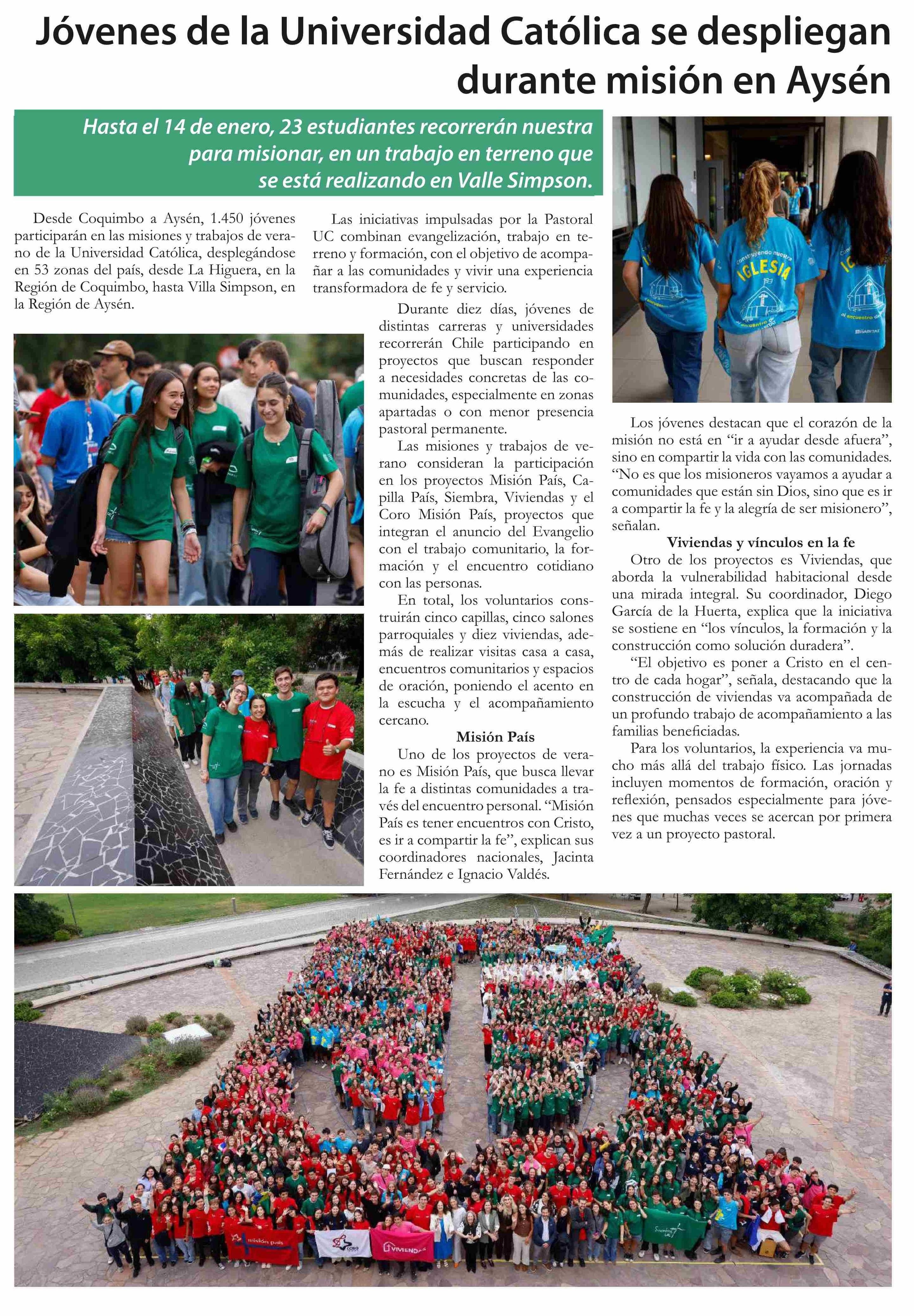 Jóvenes de la Universidad Católica se despliegan durante misión en Aysén