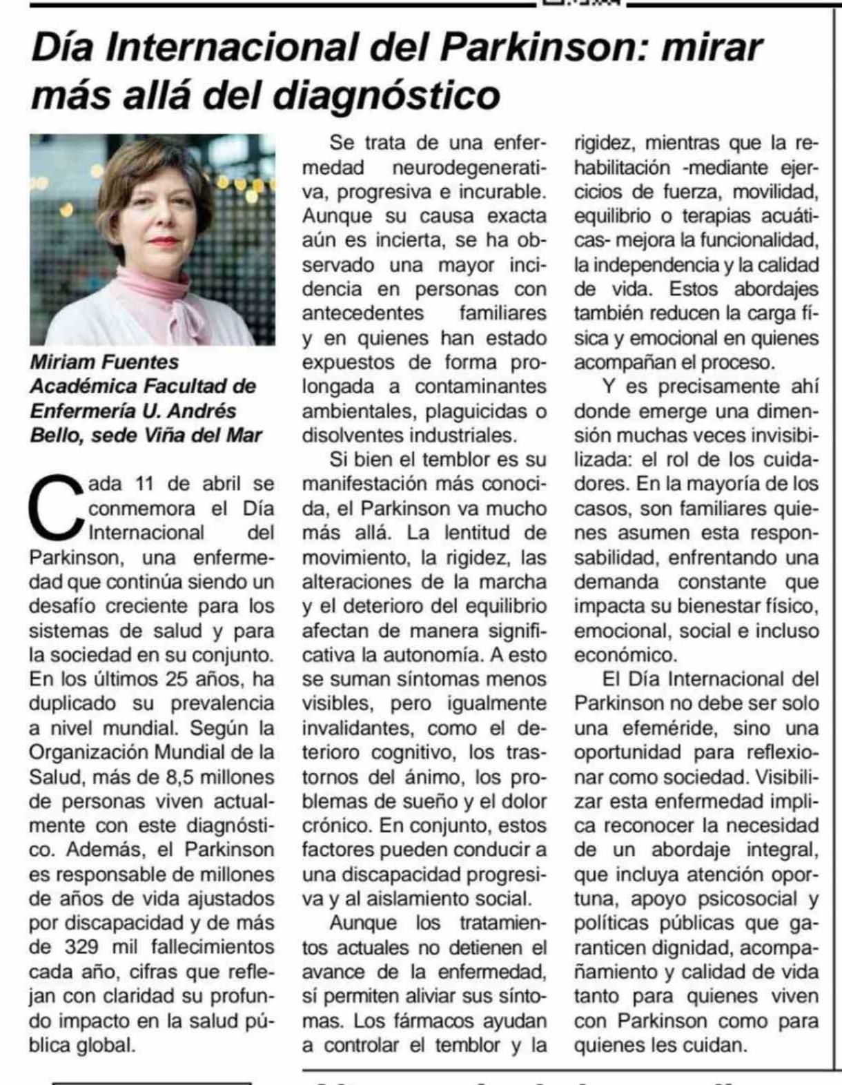 Título: Columnas de Opinión: Día Internacional del Parkinson: mirar más allá del diagnóstico