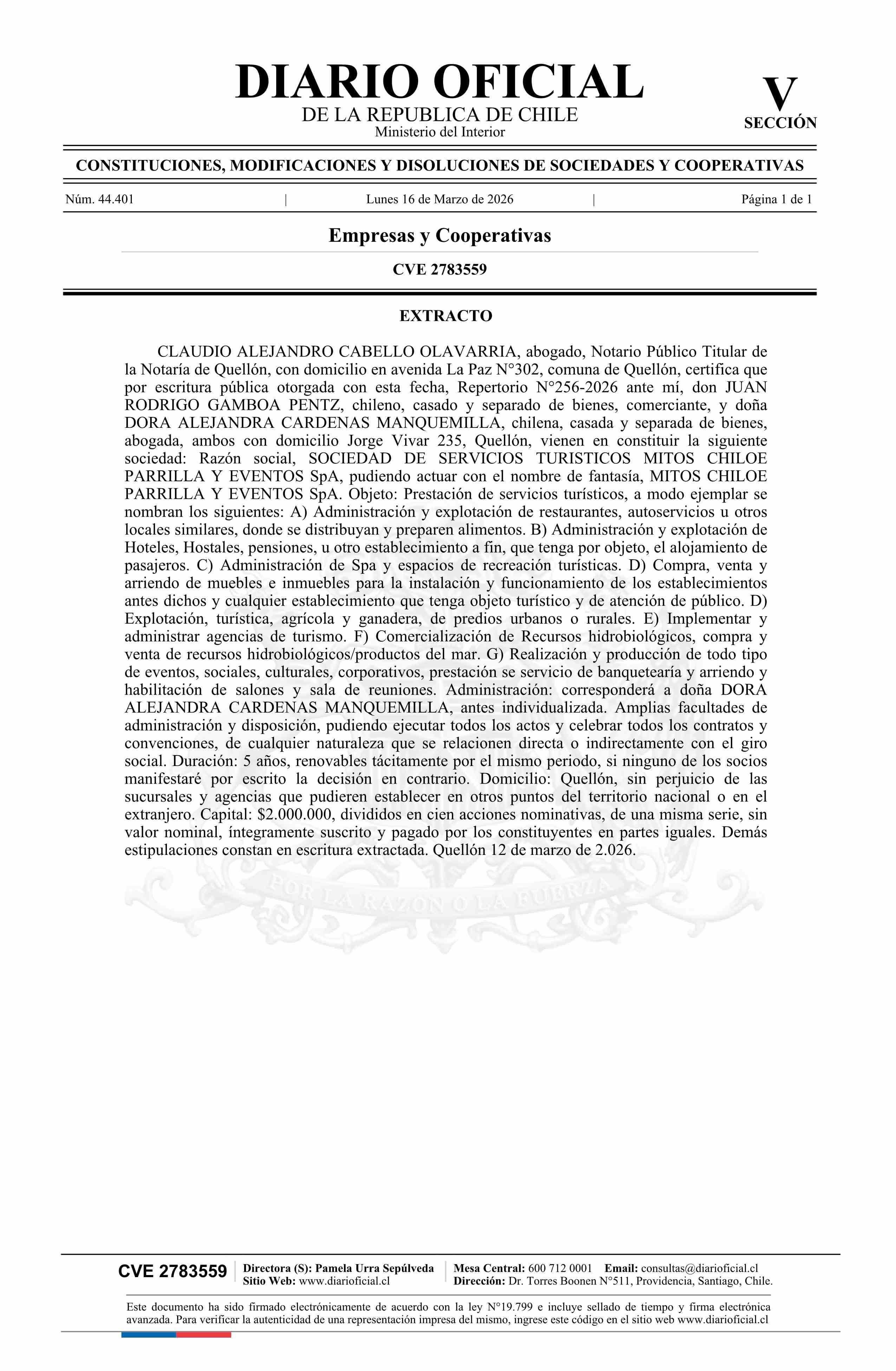 Diario Oficial Edición Electrónica (Diario Oficial de Chile - 5 Empresas Y Cooper)