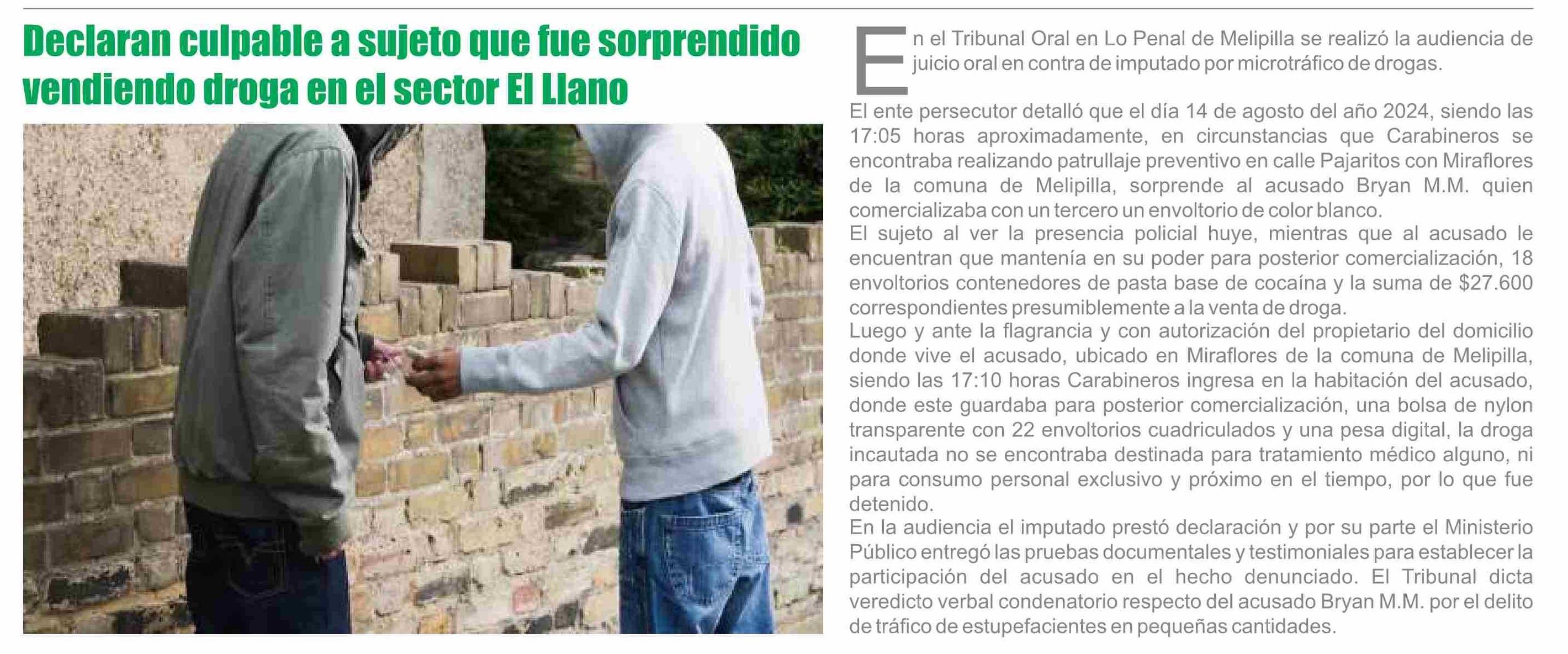 Declaran culpable a sujeto que fue sorprendido vendiendo droga en el sector El Llano